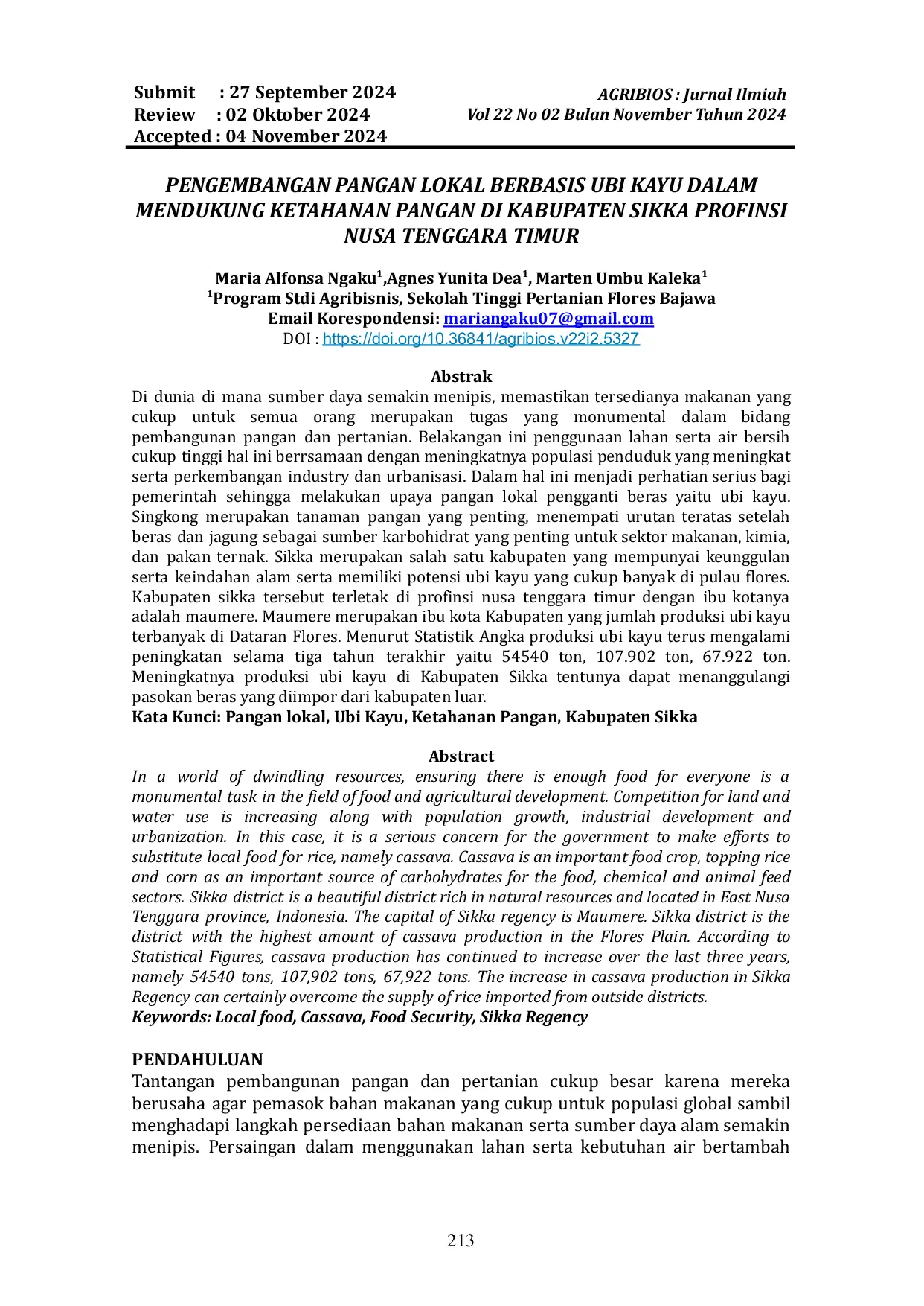 - PENGEMBANGAN PANGAN LOKAL BERBASIS UBI KAYU DALAM MENDUKUNG KETAHANAN PANGAN DI KABUPATEN SIKKA PROFINSI... unars.ac.id/ojs/index.php/agribios/article/view/5327PENGEMBANGAN PANGAN LOKAL BERBASIS UBI KAYU DALAM MENDUKUNG KETAHANAN PANGAN DI KABUPATEN SIKKA PROFINSI unars ac ojs index php agribios article view 5327