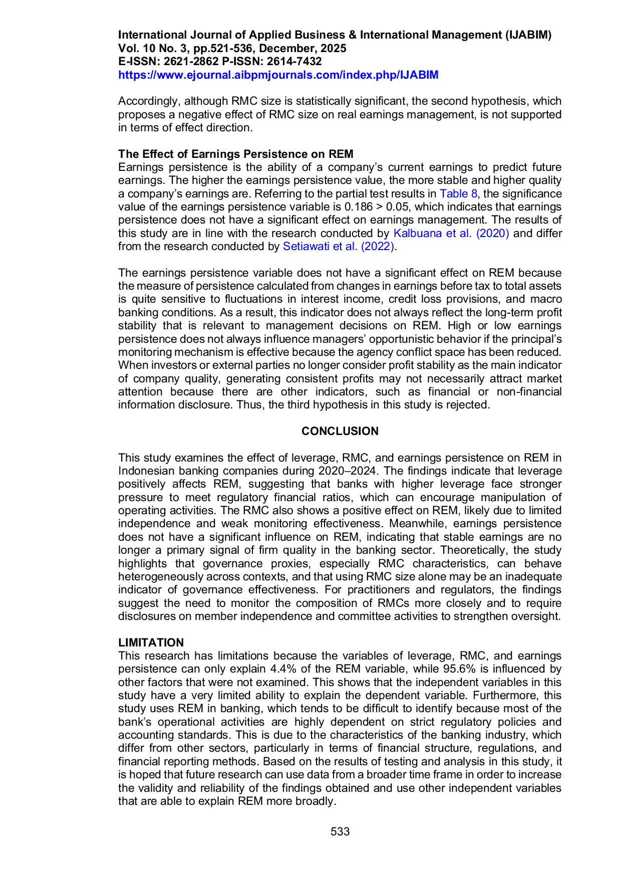 - The Effect of Leverage, Risk Management Committee, and Earnings Persistence on Real Earnings Management... doi.org/10.32535/ijabim.v10i3.4263The Effect of Leverage Risk Management Committee and Earnings Persistence on Real Earnings Management doi 10 32535 ijabim v10i3 4263