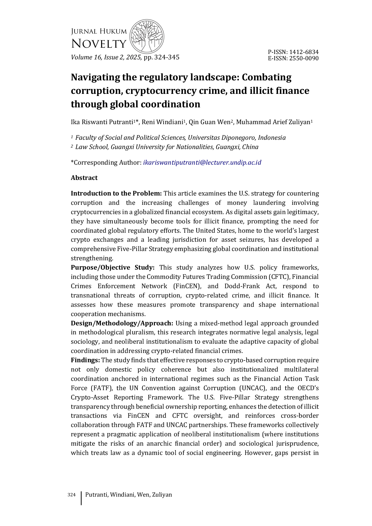 Kesimpulan penelitian ini menekankan kebutuhan akan regulasi yang harmonis dan saling terhubung untuk meningkatkan transparansi dan merespons dengan cepat dan adaptif terhadap perubahan dinamis.Penelitian ini juga menyoroti pentingnya koordinasi global dalam memerangi korupsi dan kejahatan cryptocurrency, serta peran institusi internasional dalam memfasilitasi kerjasama antara negara-negara.Namun, penelitian ini mengakui keterbatasan dalam harmonisasi penegakan hukum dan berbagi data, yang menekankan kebutuhan terus-menerus akan mekanisme koordinasi global yang adaptif dan inklusif.