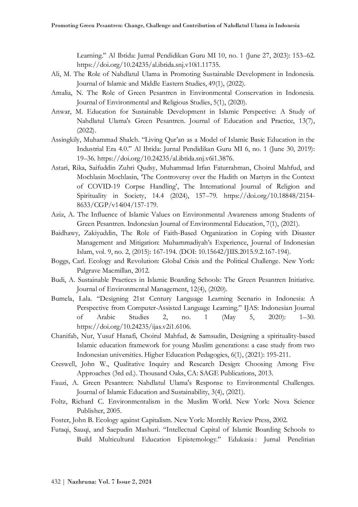 - Promoting Green Pesantren: Change, Challenge and Contribution of Nahdlatul Ulama in Indonesia | Nazhruna:... doi.org/10.31538/nzh.v7i2.4668Promoting Green Pesantren Change Challenge and Contribution of Nahdlatul Ulama in Indonesia Nazhruna doi 10 31538 nzh v7i2 4668