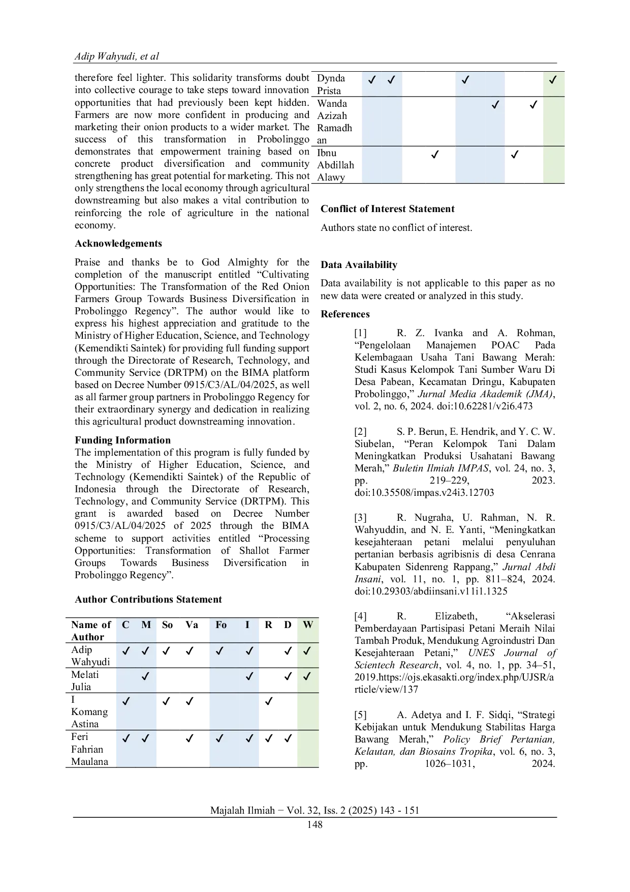 The training program for shallot farmers in Probolinggo Regency has proven to be an effective strategy for improving farmer welfare.The program focused on transferring post-harvest processing technology into high-value products like fried shallots, onion powder, and shallot oil, addressing the farmers vulnerability to fluctuating market prices of raw bulbs.Solidarity within the farmer groups fostered a safe environment for innovation and risk-taking, enabling them to explore new market opportunities.Ultimately, this initiative strengthens the local economy and reinforces the role of agriculture in national development.