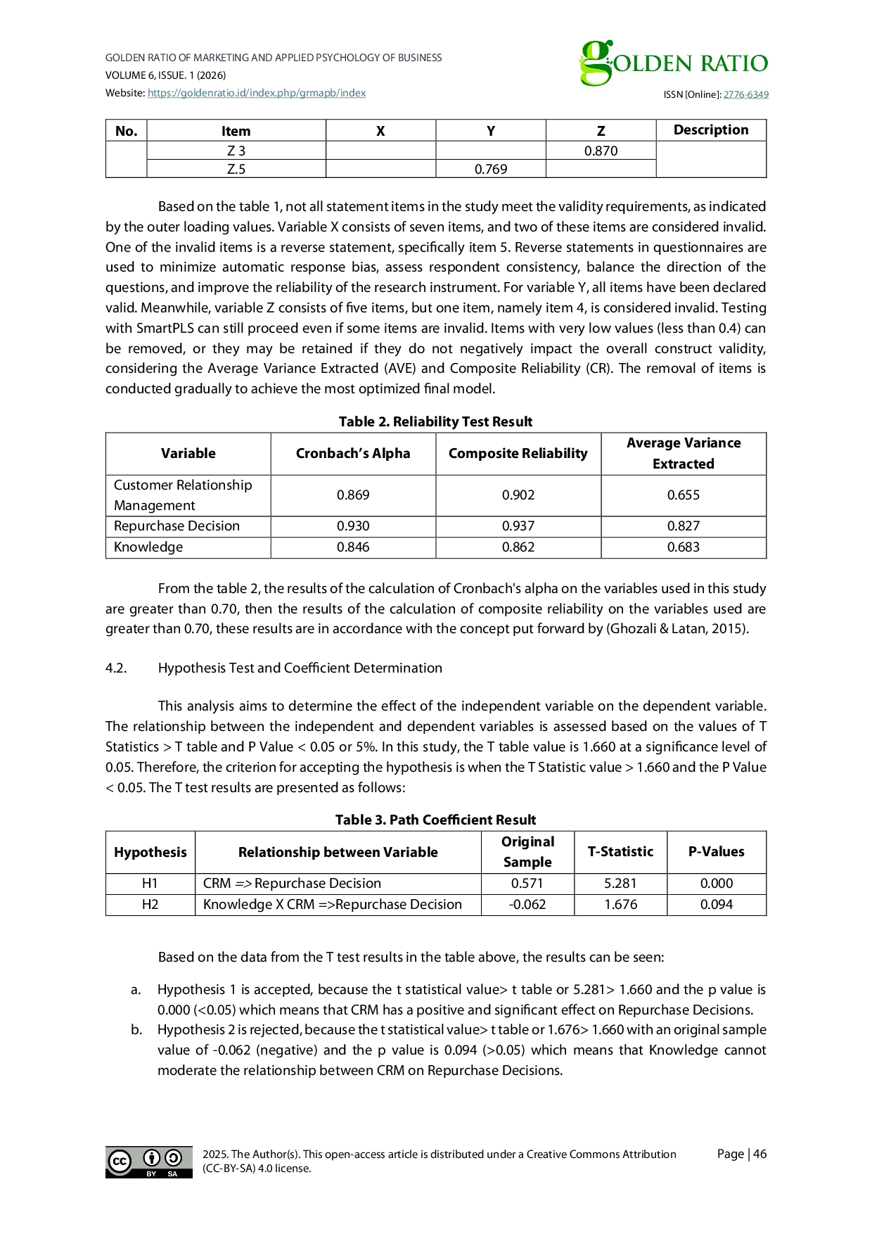 Golden Ratio of Marketing and Applied Psychology of BusinessGolden Ratio of Marketing and Applied Psychology of BusinessKeputusan pembelian ulang adalah aktivitas pembelian berulang konsumen dalam jangka waktu tertentu dan merupakan evaluasi positif terhadap produk atau jasa berdasarkan pengalaman sebelumnya. Konsumen yang puas dengan produk yang mereka terima akan melakukan pembelian ulang. Penelitian ini bertujuan untuk mengetahui pengaruh Customer Relationship Management dan Knowledge terhadap keputusan pembelian ulang produk yang ditunjukkan perlu diboikot. Penelitian ini menggunakan pendekatan kuantitatif. Dilakukan dari November 2024 hingga April 2025. Populasi dalam penelitian ini adalah Generasi-Z di Kota Bandar Lampung, berjumlah 149.403 orang. Teknik sampling menggunakan pendekatan probability sampling dengan simple random sampling. Ukuran sampel dihitung menggunakan metode Slovin dengan hasil 100 responden. Aplikasi yang digunakan dalam menganalisis data adalah SmartPLS4 dengan pendekatan Structural Equation Model (SEM). Hasil penelitian menunjukkan bahwa Customer Relationship Management memiliki pengaruh positif dan signifikan terhadap Keputusan Pembelian Ulang, dan Knowledge tidak dapat memoderasi hubungan antara Customer Relationship Management dan Keputusan Pembelian Ulang.