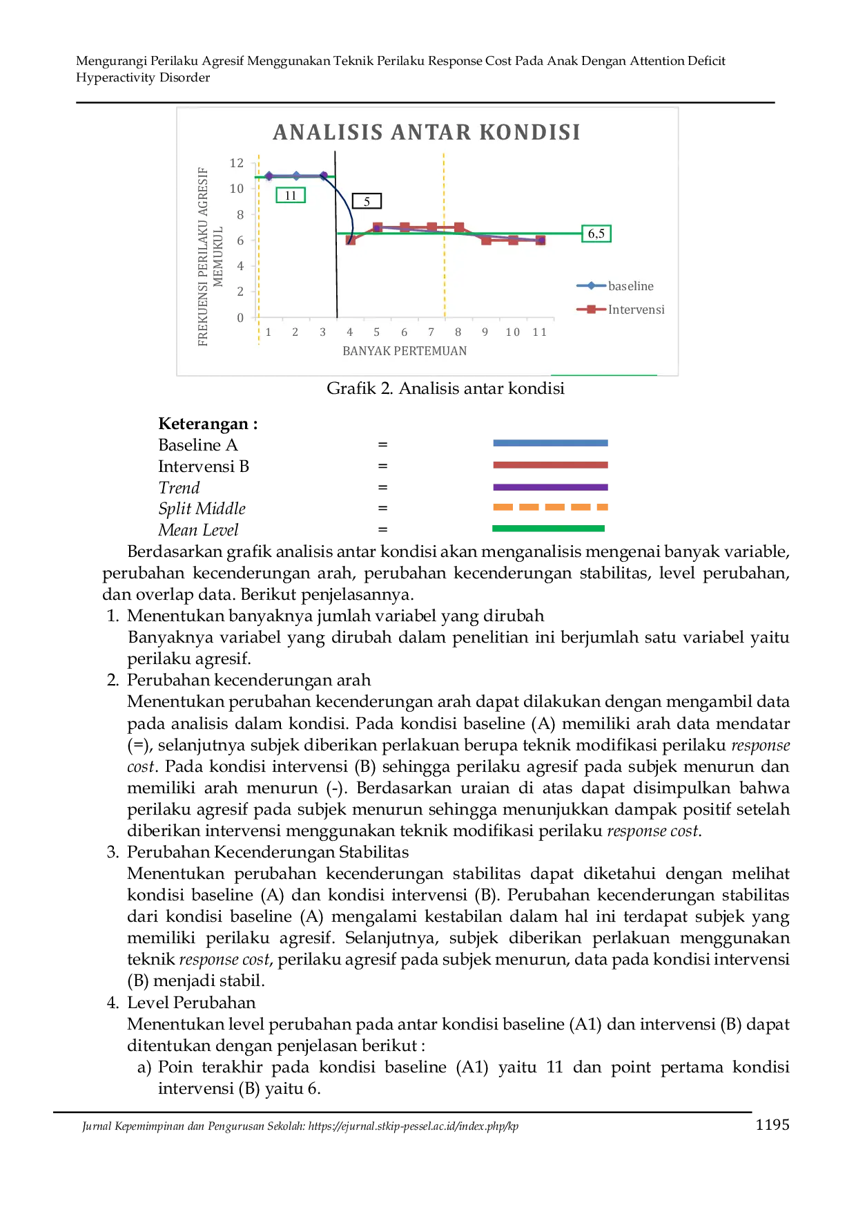 Sesuai dengan tujuan penelitian untuk mengetahui apakah teknik response cost untuk mengurangi perilaku agresif pada anak ADHD yang dilakukan pada dua kondisi yaitu baseline (A) sebanyak tiga pertemuan, dan Intervensi (B) sebanyak delapan pertemuan.Teknik response cost bekerja sebagai hukuman yang menyebabkan penurunan frekuensi perilaku yang tidak diinginkan.Dengan demikian, penggunaan teknik modifikasi perilaku response cost untuk mengurangi perilaku agresif pada anak dengan Attention Deficit Hyperactivity Disorder (ADHD) mampu atau efektif daalam mengurangi perilaku tersebut.