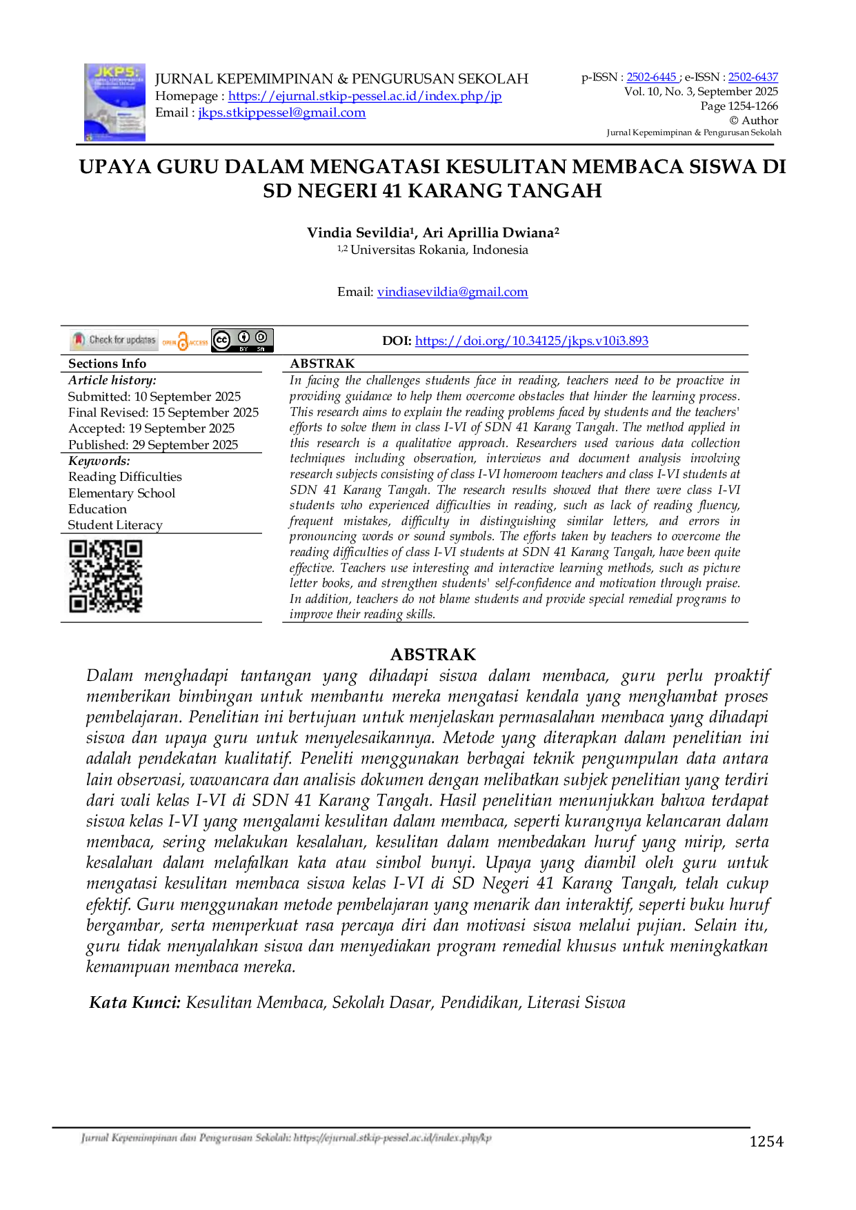 - Peran dan Upaya Guru dalam Mengatasi Kesulitan Belajar Membaca Siswa SD Kelas Rendah | Attadrib: Jurnal... doi.org/10.54069/attadrib.v6i2.525Peran dan Upaya Guru dalam Mengatasi Kesulitan Belajar Membaca Siswa SD Kelas Rendah Attadrib Jurnal doi 10 54069 attadrib v6i2 525