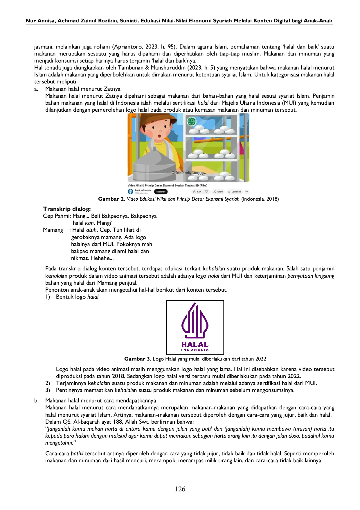 Platform digital seperti YouTube dan penyajian konten yang menarik menjadi nilai tambah dari pemanfaatan media digital sebagai sarana edukasi.Konten digital yang dikemas dengan memerhatikan karakteristik kebutuhan anak-anak memungkinkan mereka belajar secara interaktif dan menyenangkan.Pesan atau informasi terkait nilai-nilai dan prinsip ekonomi syariah dapat dipahami dengan baik dan mudah serta mampu diaplikasikan dalam kehidupan sehari-hari.Oleh karena itu, edukasi ekonomi syariah melalui konten digital dapat menjadi sarana yang efektif untuk menambah wawasan dan pengetahuan ekonomi yang sesuai dengan nilai-nilai atau syariat Islam.