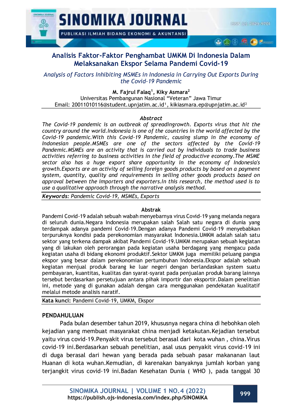 - Analisis Faktor-Faktor Penghambat UMKM Di Indonesia Dalam Melaksanakan Ekspor Selama Pandemi Covid-19... publish.ojs-indonesia.com/index.php/SINOMIKA/article/view/484Analisis Faktor Faktor Penghambat UMKM Di Indonesia Dalam Melaksanakan Ekspor Selama Pandemi Covid 19 publish ojs indonesia index php SINOMIKA article view 484