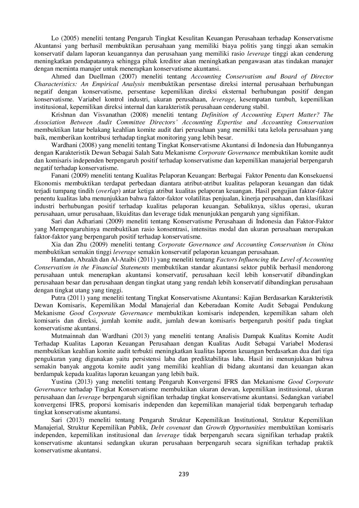 Ukuran perusahaan berpengaruh positif terhadap penerapan konservatisme akuntansi, leverage berpengaruh negatif terhadap penerapan konservatisme akuntansi, kepemilikan institusional berpengaruh negatif terhadap penerapan konservatisme akuntansi, dan komite audit berpengaruh positif terhadap penerapan konservatisme akuntansi.Hasil penelitian ini mengindikasikan pentingnya faktor-faktor tata kelola perusahaan dalam mendorong penerapan prinsip konservatisme dalam pelaporan keuangan.