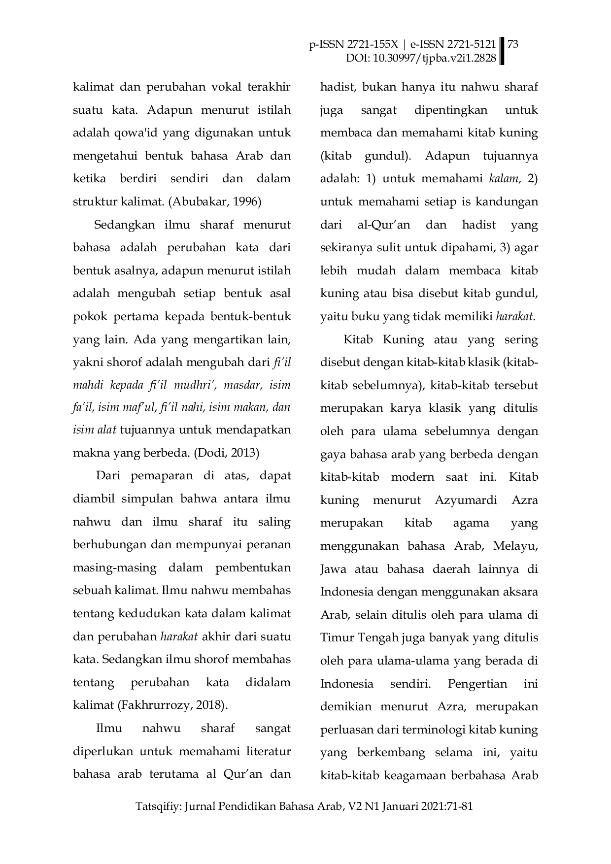 UNIDAUNIDA Abstrak: Al-Quran diturunkan dengan bahasa Arab, dengan bahasa inilah kita dapat membaca Al-Quran dan mempelajarinya. Berbicara mengenai bahasa Arab, terlepasAbstrak: Al-Quran diturunkan dengan bahasa Arab, dengan bahasa inilah kita dapat membaca Al-Quran dan mempelajarinya. Berbicara mengenai bahasa Arab, terlepas