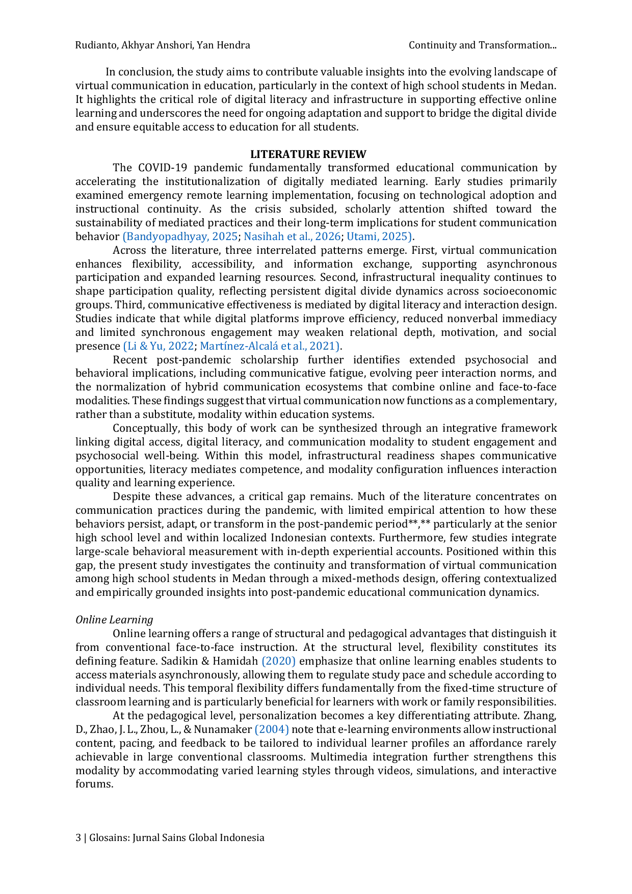 - Continuity and Change: Virtual Communication Among High School Students in Medan After Covid-19 Pandemic... doi.org/10.59784/glosains.v7i1.647Continuity and Change Virtual Communication Among High School Students in Medan After Covid 19 Pandemic doi 10 59784 glosains v7i1 647