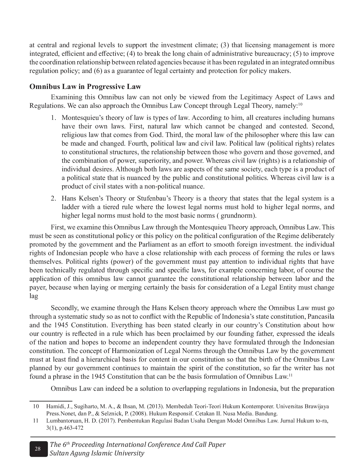 UNISSULAUNISSULA Kesimpulan dan diskusi di atas dapat ditarik sebagai berikut. Konsep Omnibus Law belum dimasukkan sebagai salah satu prinsip dalam sumber hukum, namunKesimpulan dan diskusi di atas dapat ditarik sebagai berikut. Konsep Omnibus Law belum dimasukkan sebagai salah satu prinsip dalam sumber hukum, namun