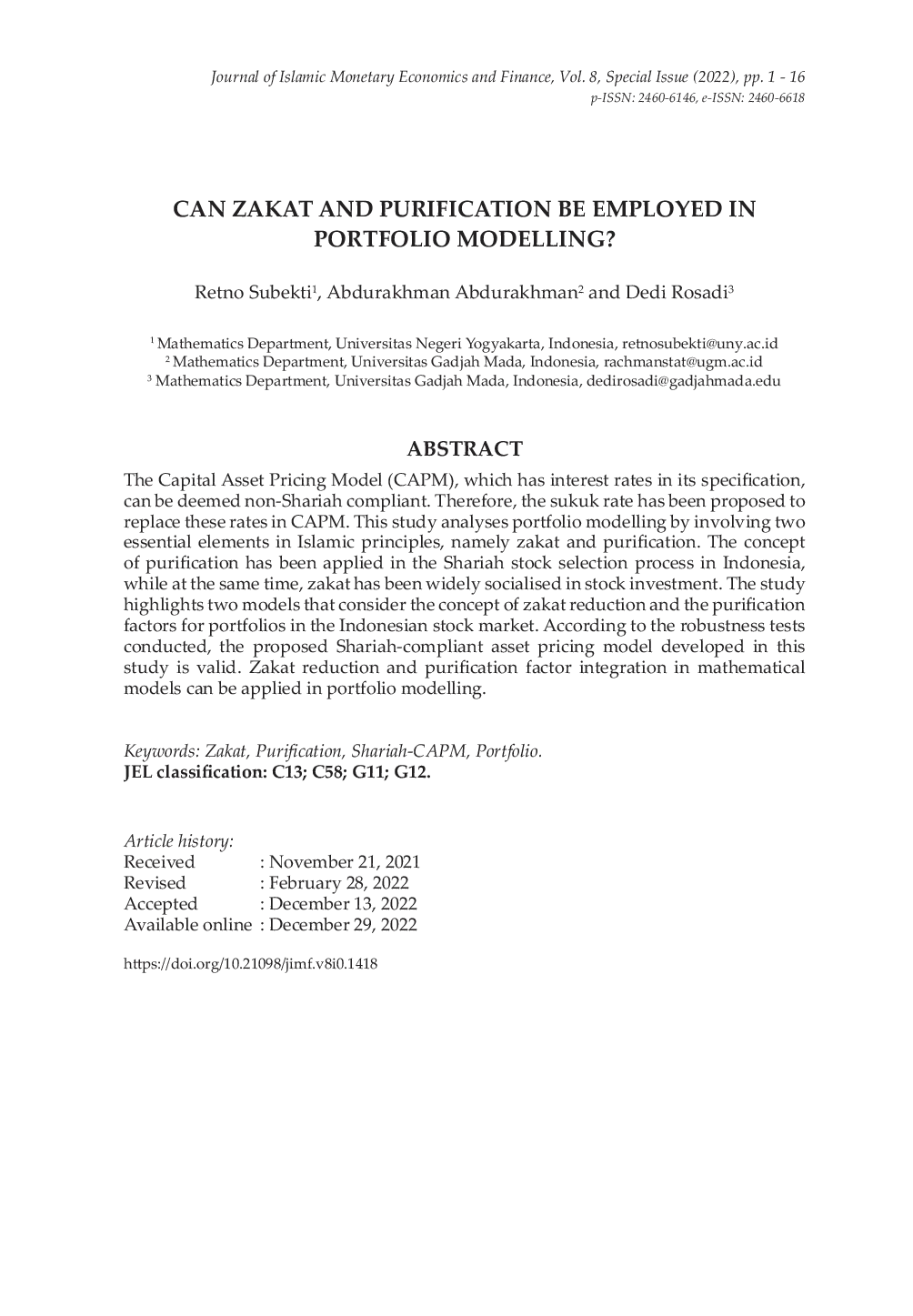 - Can Zakat and Purification Be Employed in Portfolio Modelling? | Journal of Islamic Monetary Economics... doi.org/10.21098/jimf.v8i0.1418Can Zakat and Purification Be Employed in Portfolio Modelling Journal of Islamic Monetary Economics doi 10 21098 jimf v8i0 1418
