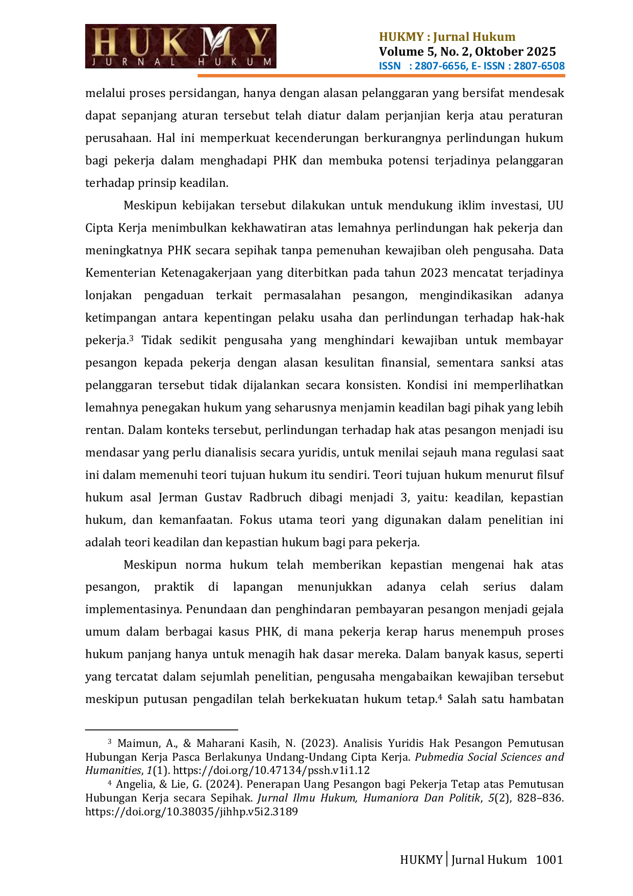- Analisis Yuridis Hak Pesangon Pemutusan Hubungan Kerja Pasca Berlakunya Undang-Undang Cipta Kerja | Pubmedia... doi.org/10.47134/pssh.v1i1.12Analisis Yuridis Hak Pesangon Pemutusan Hubungan Kerja Pasca Berlakunya Undang Undang Cipta Kerja Pubmedia doi 10 47134 pssh v1i1 12