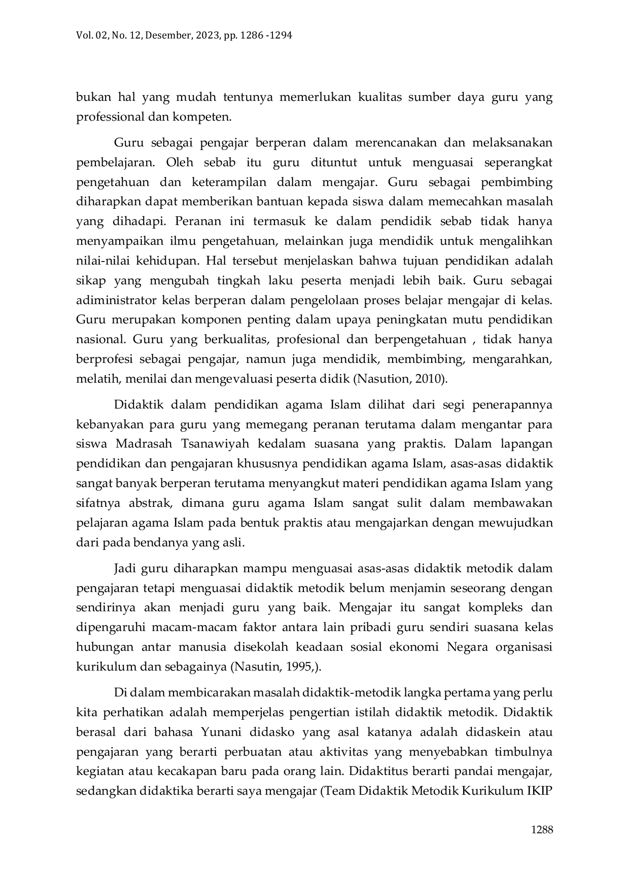Pelatihan didaktif metodik bagi guru PAI di MGMP PAI SMA/SMK se-Kota Sukabumi memberikan kontribusi positif dalam meningkatkan pemahaman dan penguasaan guru PAI terhadap metode pengajaran yang efektif.Kolaborasi antar guru PAI dalam MGMP juga berhasil ditingkatkan, yang diharapkan dapat berlanjut dalam bentuk kegiatan-kegiatan berkelanjutan.Disarankan untuk melakukan evaluasi berkala terhadap implementasi metode yang dipelajari, serta mengadakan pelatihan lanjutan untuk memperdalam pemahaman dan keterampilan guru PAI dalam mengembangkan pembelajaran yang inovatif.