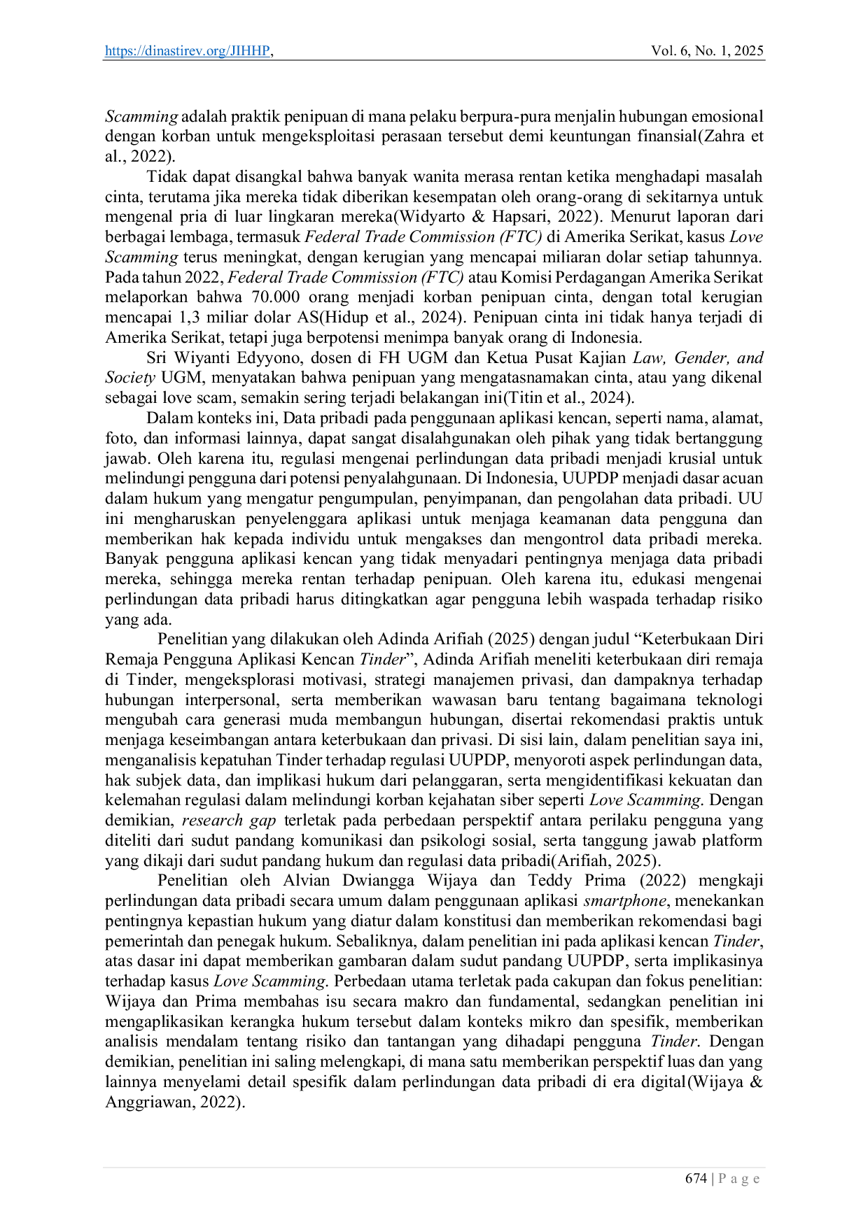 Untuk penelitian lanjutan, disarankan untuk melakukan studi komparatif antara aplikasi kencan online yang berbeda dalam hal perlindungan data pribadi dan praktik privasi. Selain itu, penelitian dapat fokus pada dampak psikologis dan sosial dari Love Scamming terhadap korban, serta strategi pencegahan dan edukasi yang efektif untuk meningkatkan kesadaran masyarakat tentang risiko ini. Terakhir, penelitian dapat mengeksplorasi peran dan tanggung jawab platform media sosial dalam mencegah penyalahgunaan data pribadi dan penipuan online, serta strategi kolaborasi antara platform dan pihak berwenang untuk meningkatkan keamanan digital.