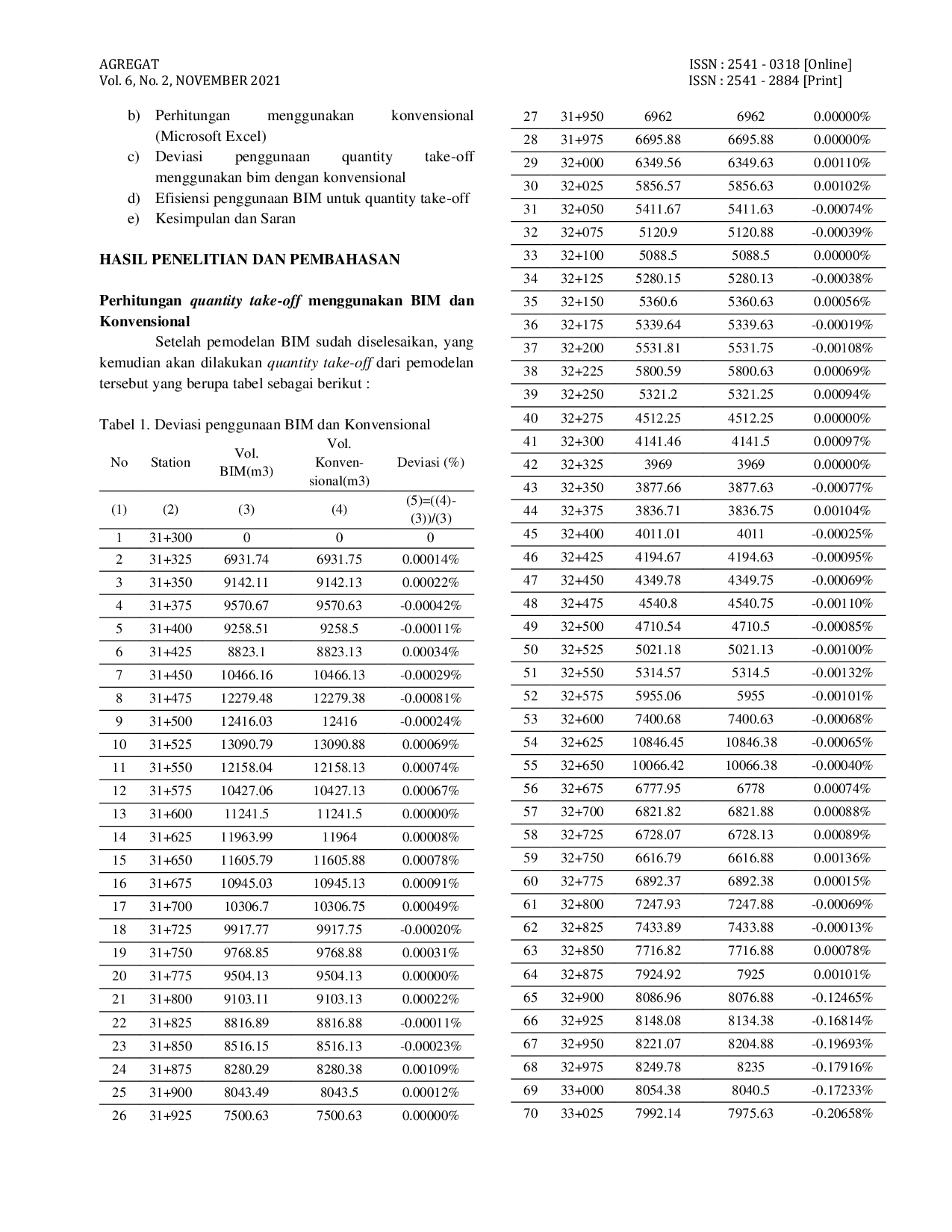 AGREGATAGREGATKemajuan dunia industri konstruksi di Indonesia mengalami perkembangan yang sangat pesat di sektor infrastruktur, terbukti banyaknya pembangunan infrastruktur beberapa tahun ini. Quantity Take-Off merupakan salah satu upaya dari kontraktor dengan melakukan perhitungan volume, yang nantinya akan digunakan sebagai bahan untuk menyusun Bill of Quantity dalam tender dan nantinya juga dijadikan bahan untuk melakukan procurement. Oleh sebab kontraktor yang dapat melakukan quantity take-off dengan akurat akan mendapatkan beberapa keuntungan seperti pengefisiensian material yang datang karena sesuai dengan aktual. Autodesk Civil 3D merupakan sebuah tools atau aplikasi yang berbasis Building Information Modeling (BIM) yang mampu melakukan quantity take-off. Dalam penelitian ini akan dibahas bagaimana kelebihan dan kelemahan dari Autodesk Civil 3D dalam melakukan quantity take-off pada volume timbunan, bila dibandingkan dengan metode yang selama ini dipakai, yaitu menghitung volume dengan menggunakan gambar dari Autocad dan dengan bantuan Microsoft Excel. Hasil perhitungan dengan menggunakan BIM pada penelitian ini menunjukkan adanya peningkatan volume sebesar 0.027%, penurunan waktu sebesar 80%, dan peningkatan biaya sebesar 37% jika dibandingkan dengan perhitungan konvensional.