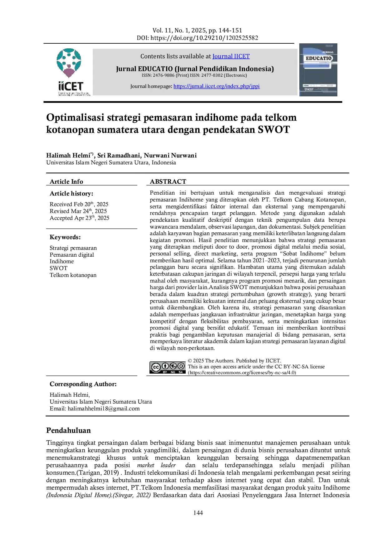 - Optimalisasi strategi pemasaran indihome pada telkom kotanopan sumatera utara dengan pendekatan SWOT... jurnal.iicet.org/index.php/j-edu/article/view/5582Optimalisasi strategi pemasaran indihome pada telkom kotanopan sumatera utara dengan pendekatan SWOT jurnal iicet index php j edu article view 5582