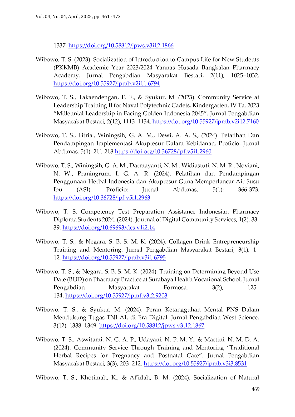- Socialization of Natural Medicines and New Perspectives on Traditional Indonesian Medicine for Pharmaceutical... doi.org/10.58812/ejecs.v3i02.298Socialization of Natural Medicines and New Perspectives on Traditional Indonesian Medicine for Pharmaceutical doi 10 58812 ejecs v3i02 298