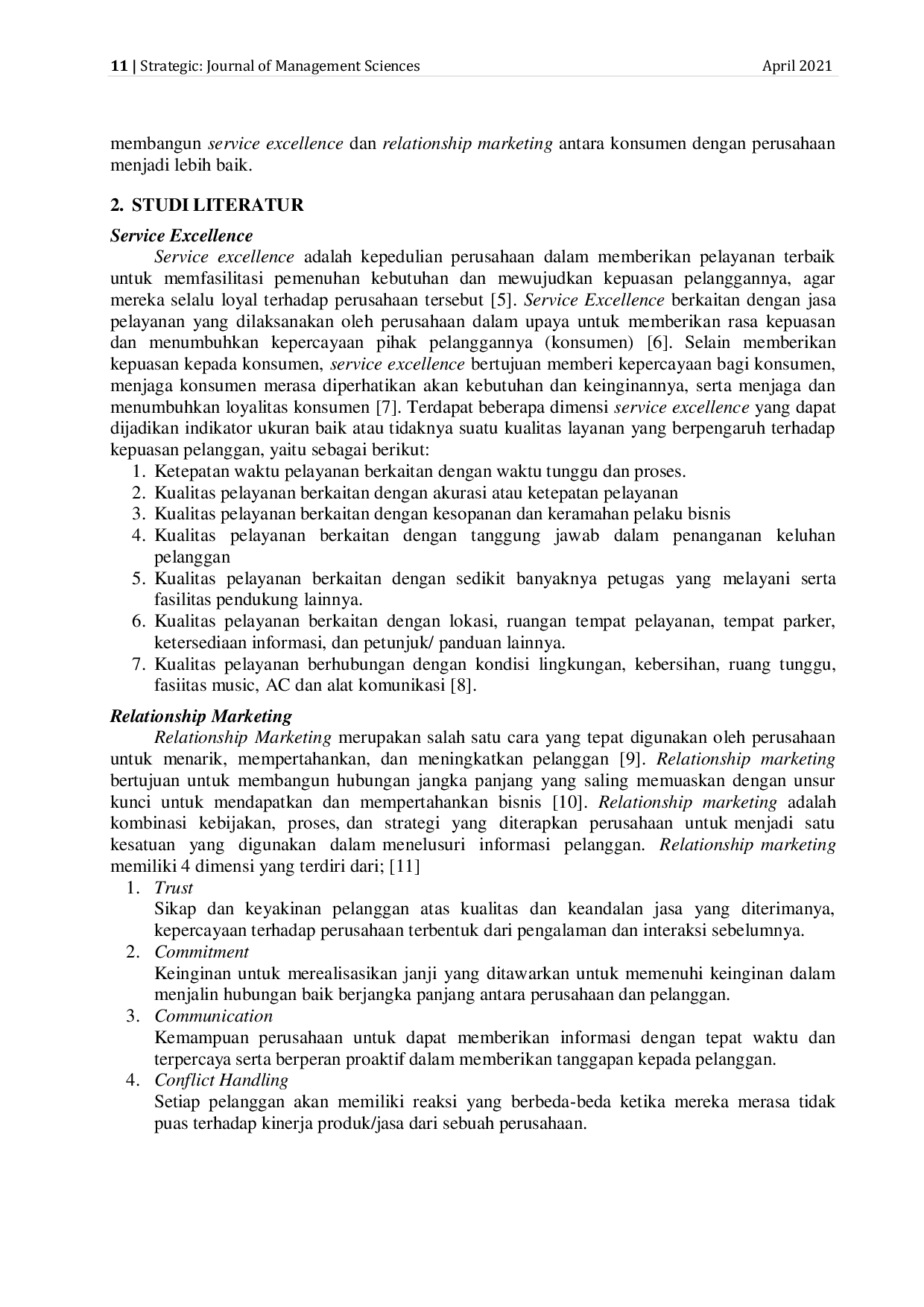 Penelitian ini menyimpulkan bahwa Service Excellence dan Relationship Marketing secara signifikan berpengaruh terhadap loyalitas konsumen pada CV Bersinar Pematangsiantar.Hasil analisis regresi berganda menunjukkan bahwa kedua variabel tersebut memiliki pengaruh positif dan signifikan terhadap loyalitas konsumen.Dengan demikian, CV Bersinar Pematangsiantar perlu terus meningkatkan kualitas pelayanan dan membangun hubungan yang baik dengan konsumen untuk mempertahankan dan meningkatkan loyalitas mereka.