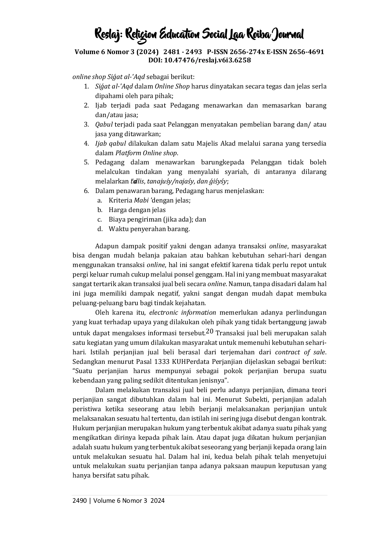 Reslaj : Religion Education Social Laa Roiba JournalReslaj : Religion Education Social Laa Roiba JournalPreferensi palsu dalam penjualanan rokok elektrik pada platform Tokopedia di Kota Medan sering terjadi. Tujuannya adalah agar produk tersebut dapat terjual ke semua kalangan tanpa adanya batasan umur. Tidak hanya itu persoalan ini juga dinilai sebagai pelanggaran dalam jual beli. Tidak hanya itu, pengaturan yang ditetapkan oleh pemerintah tentang vape sendiri tidak diterapkan agar penjualanan ini dapat merangkul semua kalangan umur. Penelitian ini menggunakan metode penelitian hukum empiris yang berguna untuk mengambil data langsung ke lapangan. Hasil penelitian menunjukkan bahwa Pengaturan resiko penjualanan e-ciggarette menurut Fatwa DSN MUI Nomor 146/DSN-MUI/XII/2021 Tentang Online shop Berdasarkan Prinsip Syariah. Hal tersebut dianggap t̄dlis karena dinilai telah menipu konsumen, menipu platform dan vendor, serta menjual barang yang tidak sesuai dengan aturan perundang-undangan karena mematikan fitur Batasan usia menjadi semua umur. Hal ini dinilai sudah melanggar aturan karena mengabaikan resiko yang seharusnya dihindari dari katagori dibawah 21 tahun.