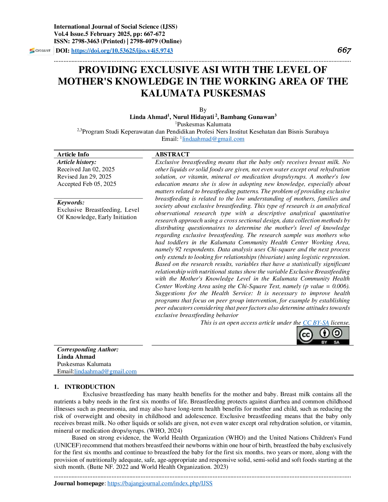 - PROVIDING EXCLUSIVE ASI WITH THE LEVEL OF MOTHER'S KNOWLEDGE IN THE WORKING AREA OF THE KALUMATA... bajangjournal.com/index.php/IJSS/article/view/9743PROVIDING EXCLUSIVE ASI WITH THE LEVEL OF MOTHERS KNOWLEDGE IN THE WORKING AREA OF THE KALUMATA bajangjournal index php IJSS article view 9743