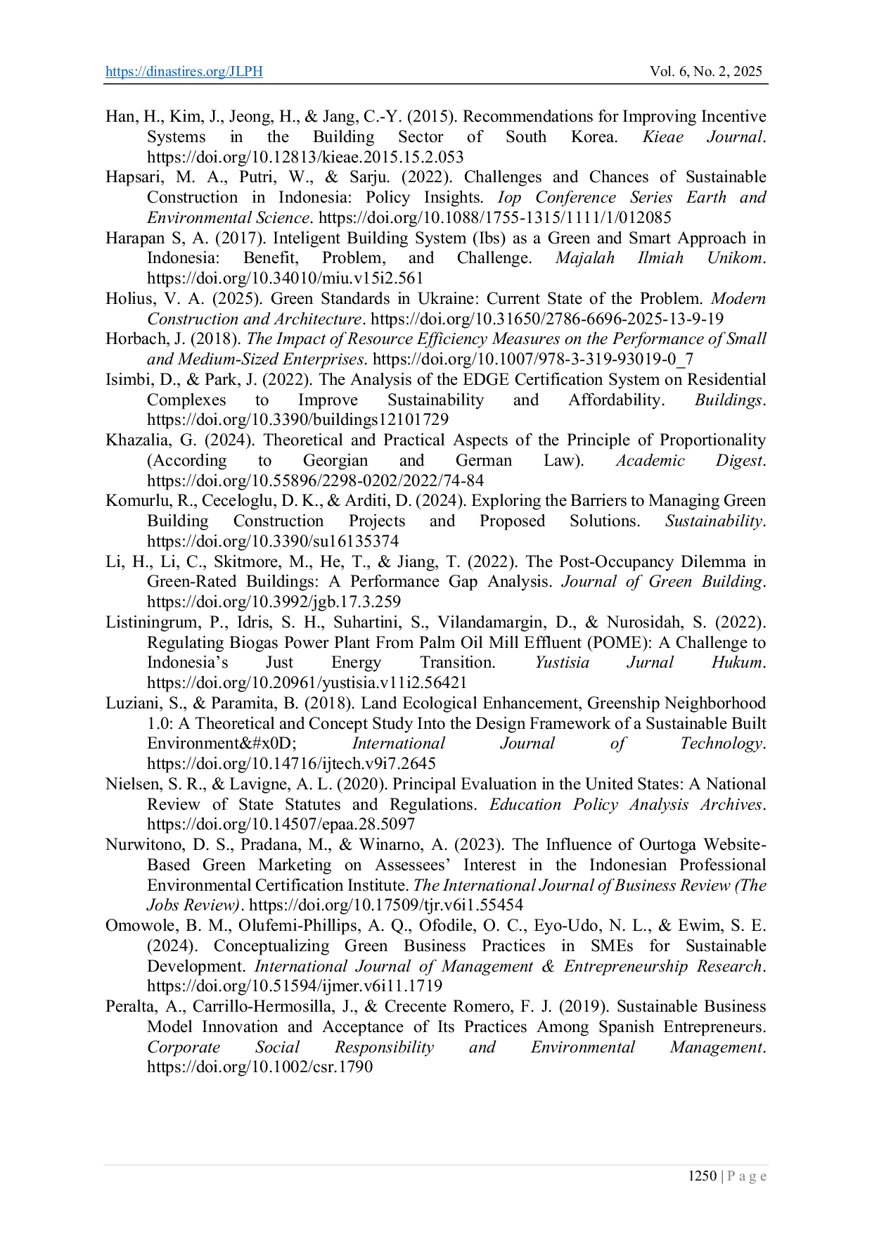 Further research should investigate the effectiveness of various incentive mechanisms, such as tax breaks or subsidies, in encouraging voluntary adoption of green building practices among SMEs, addressing the financial barriers identified in this study. Additionally, a comparative analysis of green building certification schemes across different Indonesian regions could reveal best practices and inform the development of more harmonized national standards, reducing legal uncertainty. Finally, future studies could explore the long-term economic benefits of green buildings, including reduced operational costs and increased property values, to better quantify the return on investment for developers and building owners, thereby strengthening the economic rationale for sustainable construction practices.