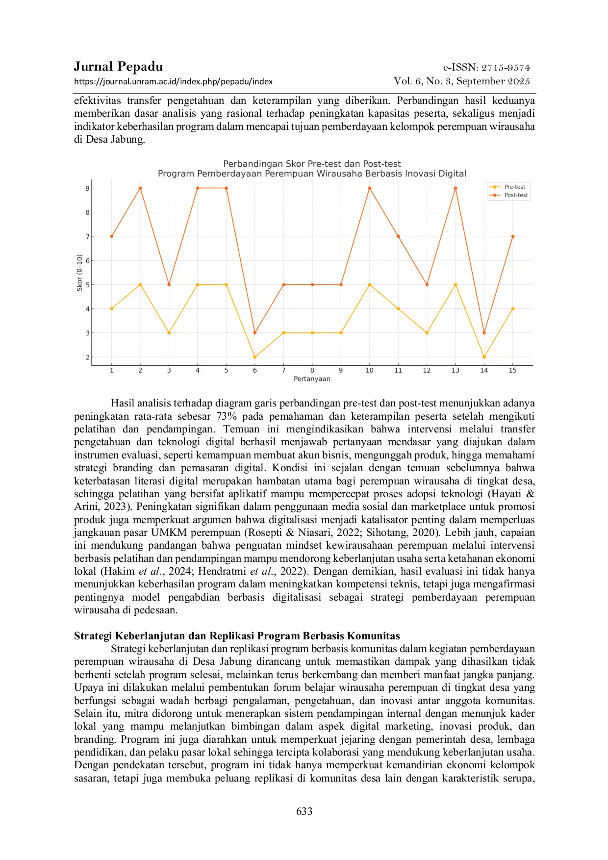 UNRAMUNRAM Hasil kegiatan menunjukkan adanya peningkatan signifikan pengetahuan dan keterampilan peserta, tercermin dari kenaikan rata-rata skor pre-test ke post-testHasil kegiatan menunjukkan adanya peningkatan signifikan pengetahuan dan keterampilan peserta, tercermin dari kenaikan rata-rata skor pre-test ke post-test