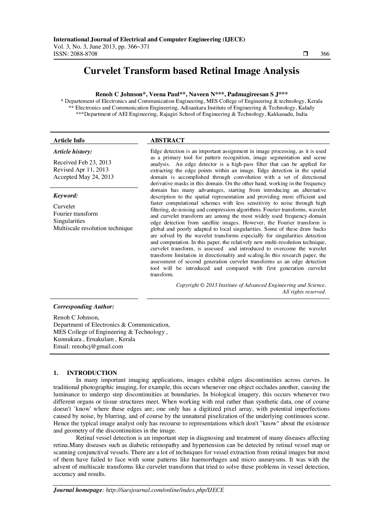 International Journal of Electrical and Computer Engineering (IJECE)International Journal of Electrical and Computer Engineering (IJECE)Edge detection is an important assignment in image processing, as it is used as a primary tool for pattern recognition, image segmentation and scene analysis. An edge detector is a high-pass filter that can be applied for extracting the edge points within an image. Edge detection in the spatial domain is accomplished through convolution with a set of directional derivative masks in this domain. On the other hand, working in the frequency domain has many advantages, starting from introducing an alternative description to the spatial representation and providing more efficient and faster computational schemes with less sensitivity to noise through high filtering, de-noising and compression algorithms. Fourier transforms, wavelet and curvelet transform are among the most widely used frequency-domain edge detection from satellite images. However, the Fourier transform is global and poorly adapted to local singularities. Some of these draw backs are solved by the wavelet transforms especially for singularities detection and computation. In this paper, the relatively new multi-resolution technique, curvelet transform, is assessed and introduced to overcome the wavelet transform limitation in directionality and scaling. In this research paper, the assessment of second generation curvelet transforms as an edge detection tool will be introduced and compared with first generation curvelet transform.