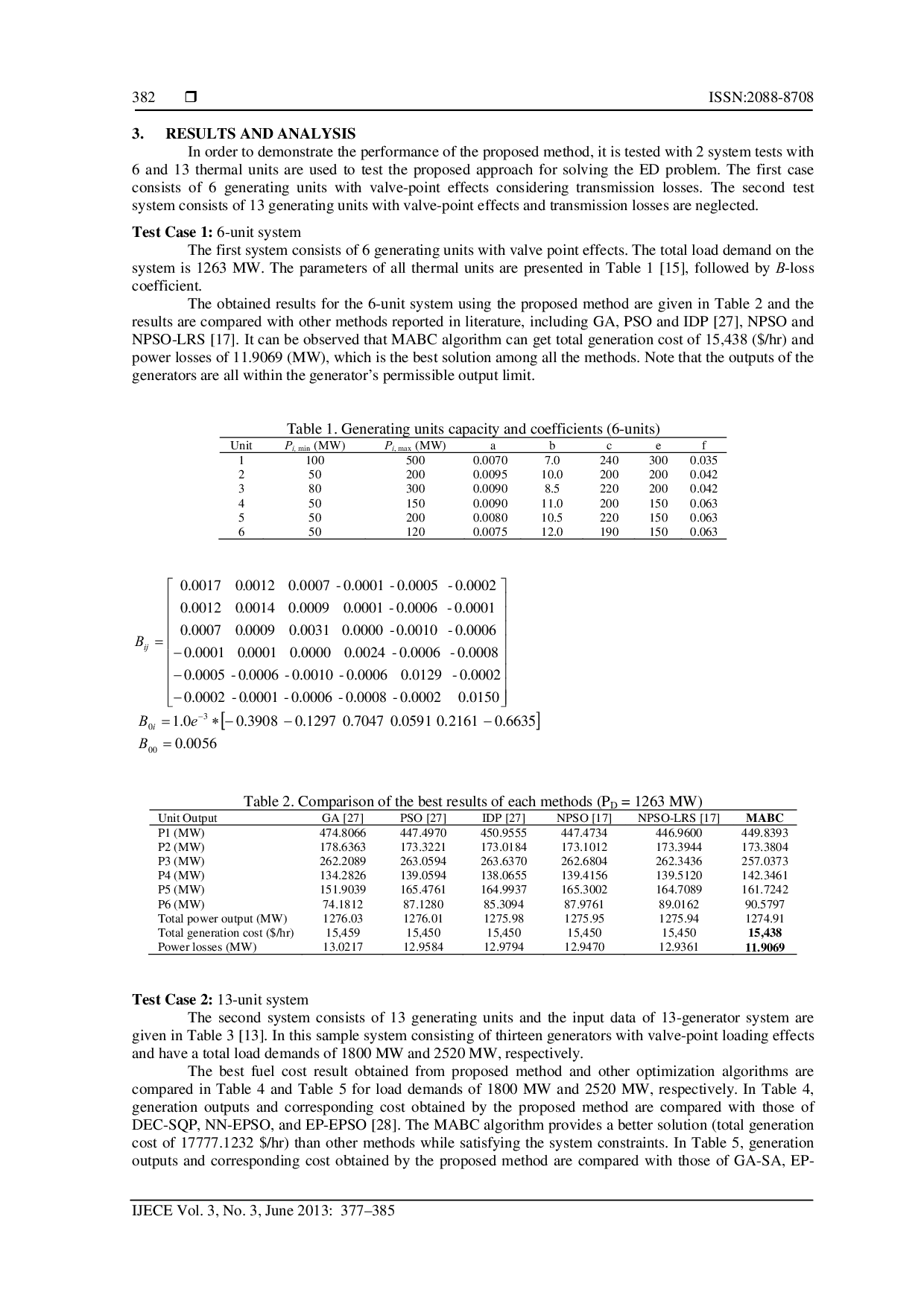 International Journal of Electrical and Computer Engineering (IJECE)International Journal of Electrical and Computer Engineering (IJECE)This paper presents a new approach for solving economic dispatch (ED) problem with valve-point effect using a modified artificial bee colony (MABC) algorithm. Artificial bee colony algorithm is a recent population-based optimization method which has been successfully used in many complex problems. This paper proposes a novel best mechanism algorithm based on a modified ABC algorithm, in which a new mutation strategy inspired from the differential evolution (DE) is introduced in order to improve the exploitation process. To demonstrate the effectiveness of the proposed method, the numerical studies have been performed for two different sample systems. The results of the proposed method are compared with other techniques reported in recent literature. The results clearly show that the proposed MABC algorithm outperforms other state-of-the-art algorithms in solving ED problem with the valve-point effect.