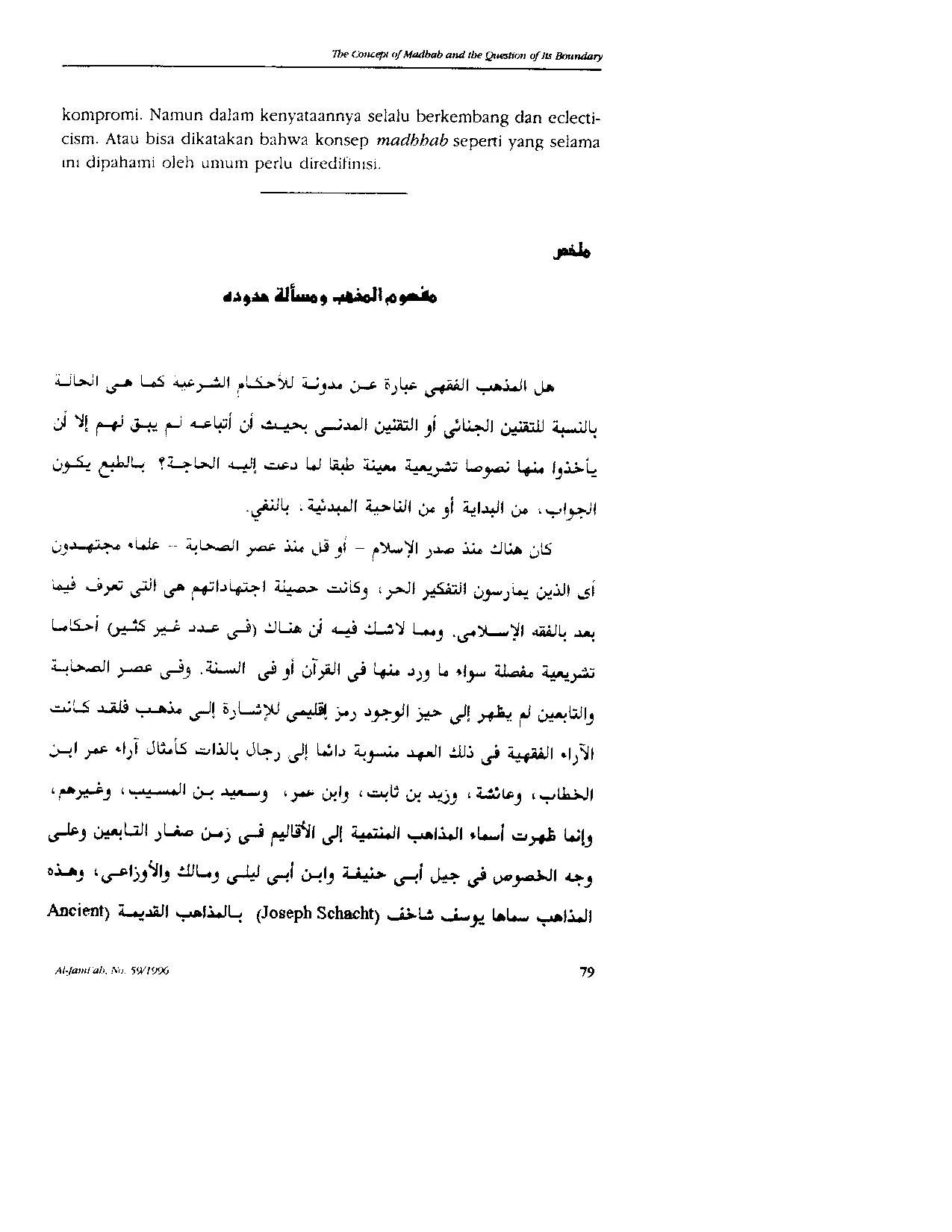 Al-Jami'ah: Journal of Islamic StudiesAl-Jami'ah: Journal of Islamic StudiesKonsep tentang Madhhab dan Persoalan Batas-batasnya. Apakah suatu madhhab itu bagaikan sebuah Kumpulan hukum Islam seperti Kitab Undang-undang Hukum Pidana (Perdata), sehingga pengikut madhhab tersebut tinggal mengambil hukum tertentu dari Kumpulan hukum Islam tersebut sesuai dengan yang dibutuhkan? Jawabannya, pada mulanya atau pada dasarnya tidak demikian. Sejak awal — katakanlah sejak masa sahabat — ulama berijtihad (berpikir bebas). Hasil ijtihad itulah yang kemudian kita kenal dengan nama hukum Islam. Sudah barang tentu di sana ada (dalam jumlah yang tidak begitu banyak) ketentuan-ketentuan yang rinci tentang hukum Islam yang sudah disebutkan di dalam al-Quran maupun Hadits. Pada masa tabiin dan tabiut tabiin, istilah kedaerahan untuk menyebutkan suatu madhhab mulai muncul. Pemikiran hukum Islam selalu dikaitkan dengan nama pribadi dari para tokoh, seperti pendapat Umar b. al-Khattab, Aishah Zayd b. Thabit, Ibn Umar, Said b. al-Musayyab, dan lainnya. Baru pada zaman tabiin kecil, terutama generasi Abu Hanifa, Ibn Abi Laylah, Malik, dan al-Awzai, muncul nama madhhab yang dikaitkan dengan daerah — yang disebut Joseph Schacht sebagai ancient schools of law dan Ahmad Hasan sebagai early schools of law — seperti ahl al-Iraq, ahl al-Madina, dan ahl al-Sham. Sejak gerakan yang dilancarkan oleh al-Shafii, sebutan kedaerahan mulai berganti menjadi madhhab perorangan, seperti madhhab Hanafi, Maliki, Syafii, dan Hanbali. Namun di dalam madhhab, baik berdasarkan nama kedaerahan maupun perorangan, pendapat pribadi tetap muncul dan berkembang, sehingga terjadi perbedaan pendapat, baik di dalam satu madhhab maupun antar madhhab. Perbedaan ini terus ada meskipun sudah ada usaha pemaduan pendapat seperti yang dilakukan al-Shafii, yang menyatakan bolehnya taqlid kepada dirinya sendiri maupun orang lain, sebagaimana ditegaskan berkali-kali oleh al-Muzani dalam pendahuluan kitab Mukhtasarnya. Karena itu, perlu diajukan pertanyaan kembali tentang konsep madhhab dan batas-batasnya, karena kenyataannya madhhab tidak kaku dan penuh kompromi, melainkan dinamis dan bersifat ekletik. Dengan demikian, konsep madhhab seperti yang selama ini dipahami perlu didefinisikan ulang.