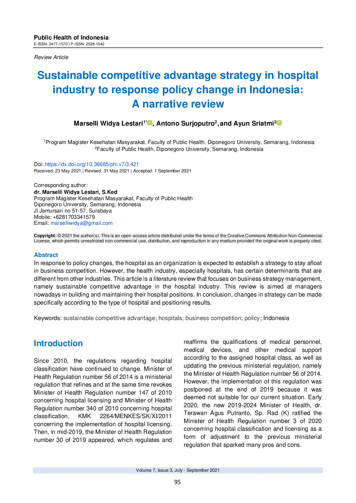 - Sustainable competitive advantage strategy in hospital industry to response policy change in Indonesia:... stikbar.org/ycabpublisher/index.php/PHI/article/view/421Sustainable competitive advantage strategy in hospital industry to response policy change in Indonesia stikbar ycabpublisher index php PHI article view 421
