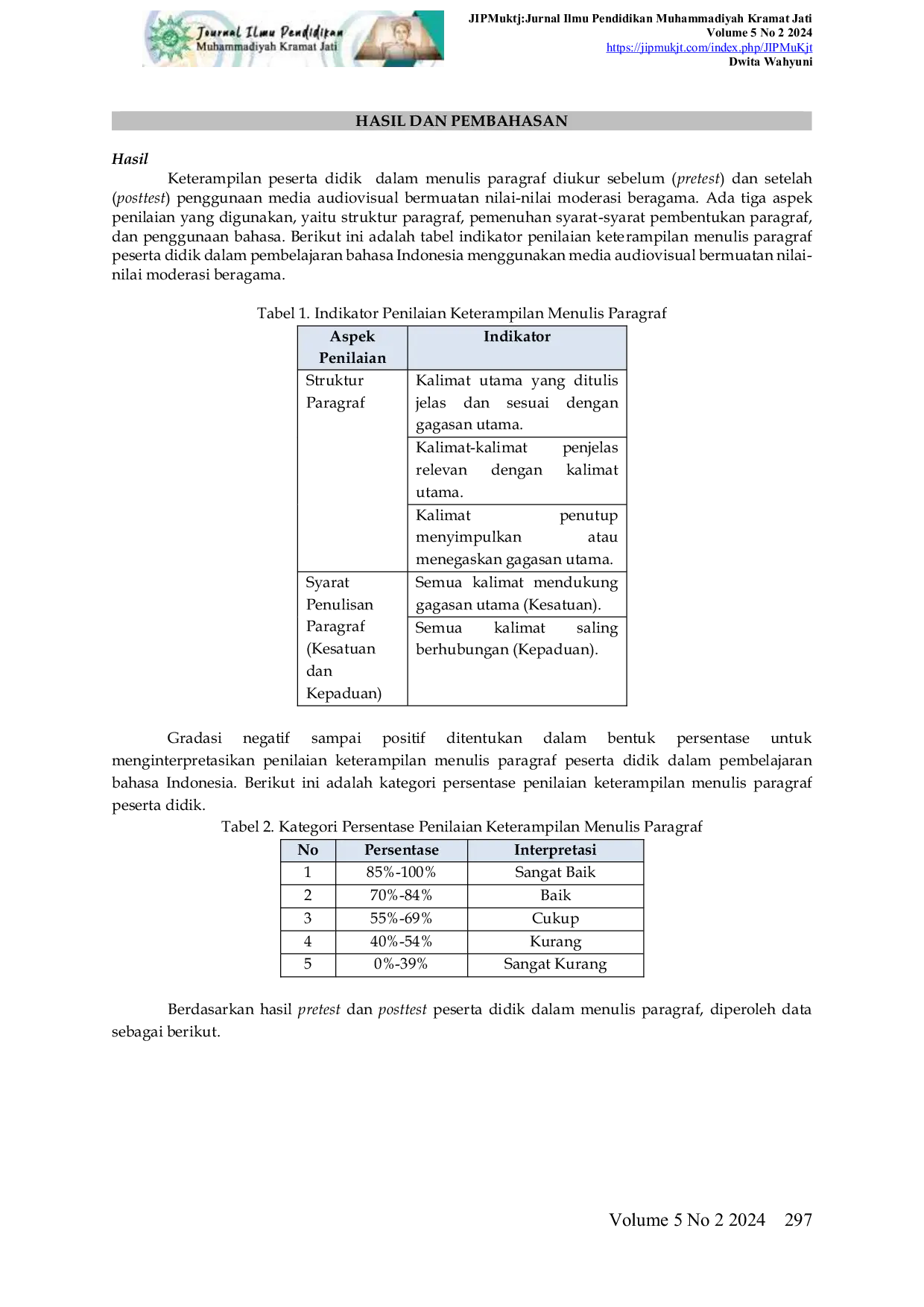 Penggunaan media audiovisual dalam pembelajaran bahasa Indonesia terbukti meningkatkan motivasi belajar dan kemampuan menulis paragraf peserta didik.Terjadi peningkatan nilai rata-rata kemampuan menulis dari 71,22 menjadi 81,06 setelah penerapan media tersebut.Peneliti menyarankan agar penelitian lanjutan dilakukan melalui Penelitian Tindakan Kelas dalam beberapa siklus serta menguji penggunaan media ini pada materi lain dalam pembelajaran bahasa Indonesia maupun mata pelajaran lainnya.