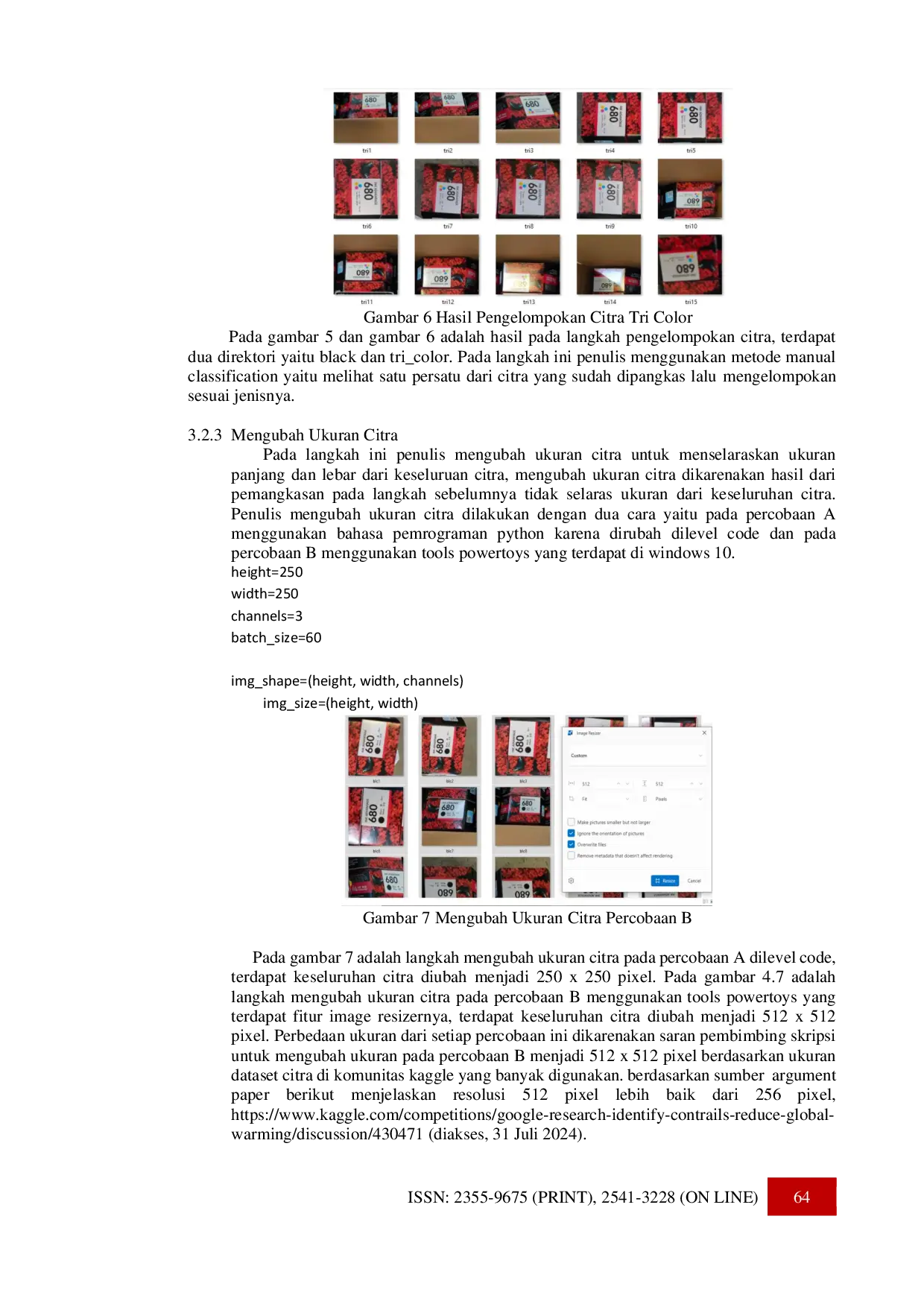 Penelitian ini menyimpulkan bahwa dataset citra tinta cartridge HP 680 black color dan tri color dapat digunakan untuk mengembangkan model Deep Learning.Proses pengembangan model melibatkan preprocessing, pemodelan arsitektur Convolutional Neural Network, pelatihan model, dan evaluasi.Hasil evaluasi menunjukkan akurasi model sebesar 96.67% pada percobaan B, yang memenuhi target akurasi yang ditetapkan.Dengan demikian, model yang dikembangkan dapat digunakan untuk mengklasifikasikan tinta cartridge secara akurat.