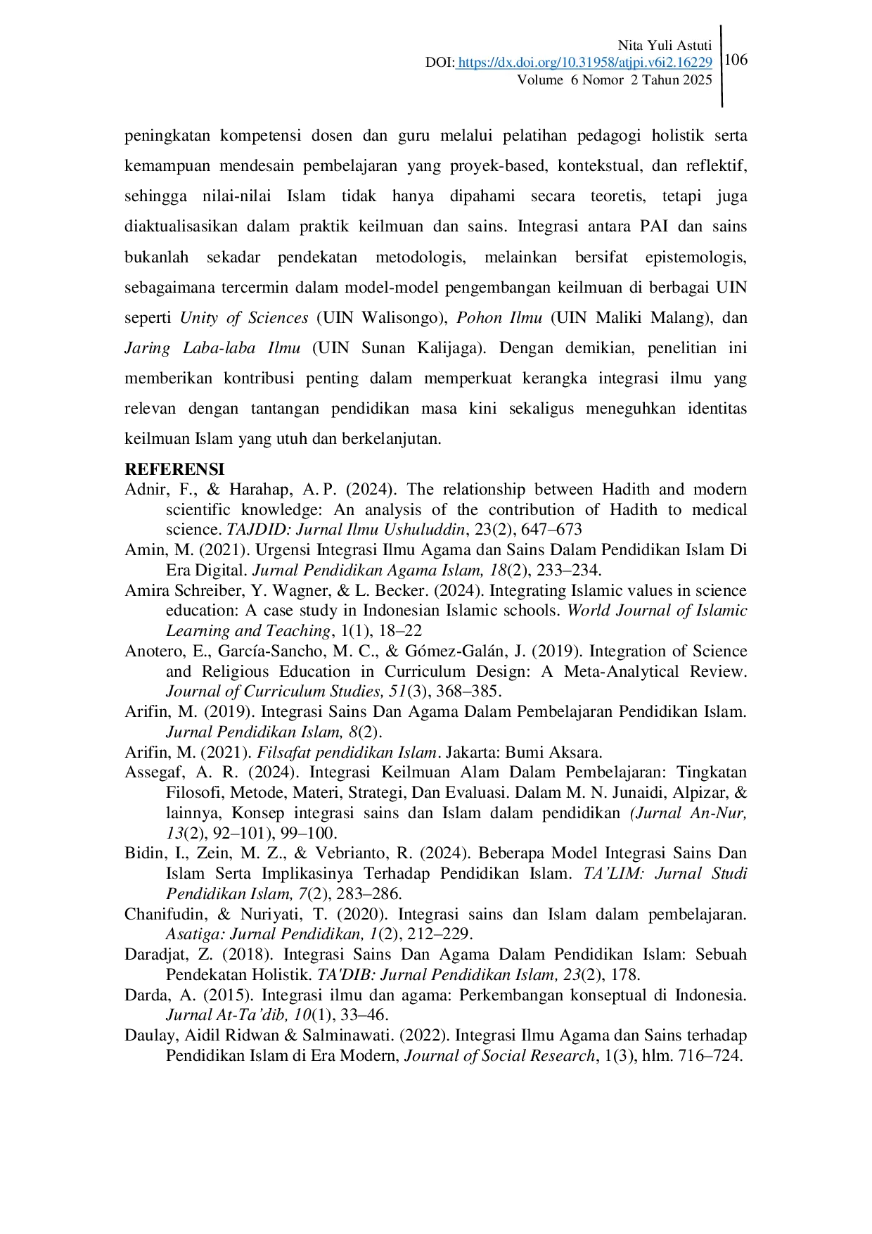 - Tipologi Integrasi Ilmu Agama dalam Pemikiran Islam Kontemporer | JIIP - Jurnal Ilmiah Ilmu Pendidikan.... doi.org/10.54371/jiip.v5i1.398Tipologi Integrasi Ilmu Agama dalam Pemikiran Islam Kontemporer JIIP Jurnal Ilmiah Ilmu Pendidikan doi 10 54371 jiip v5i1 398