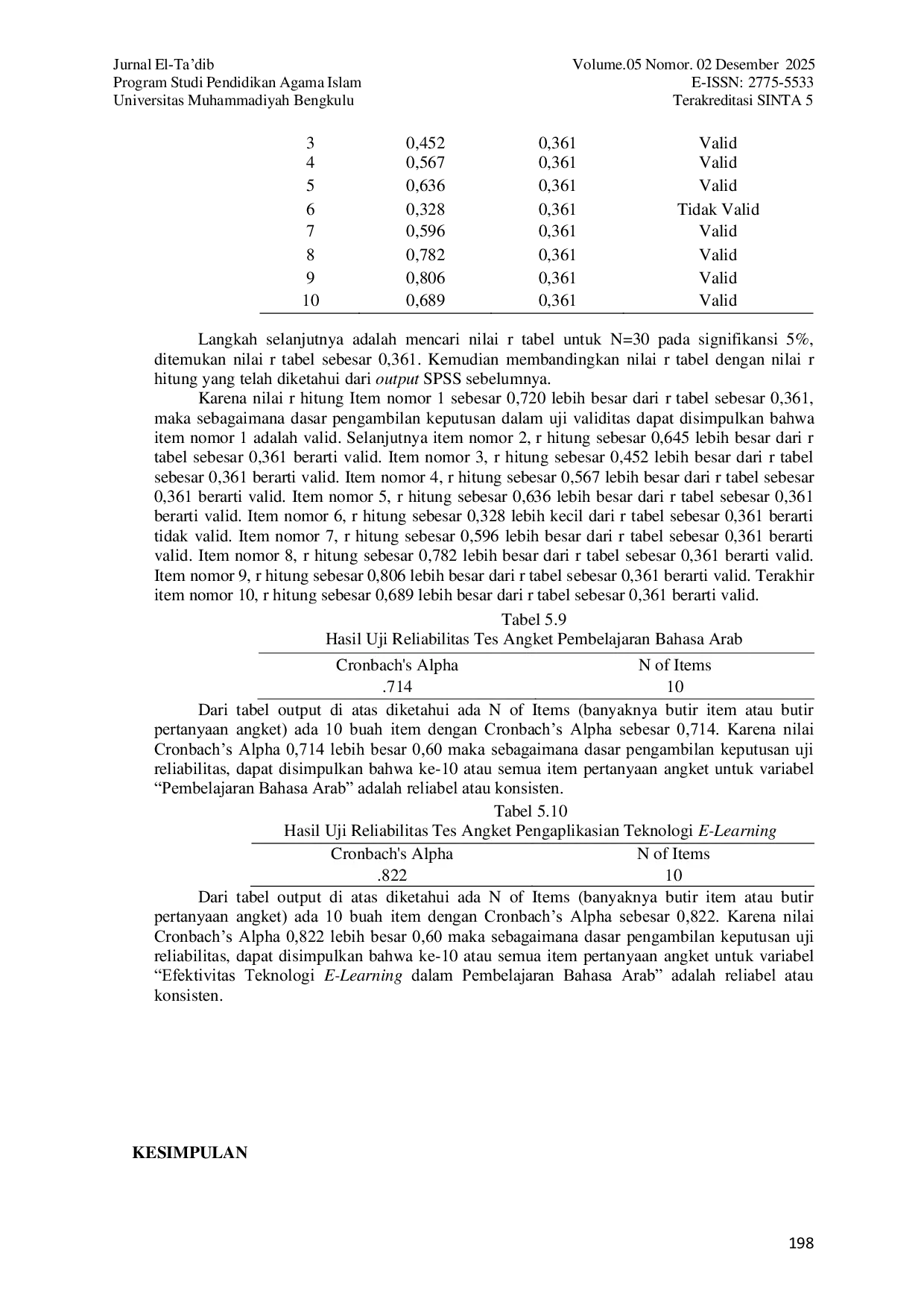 Kesimpulan penelitian ini membuktikan bahwa pengaplikasian teknologi e-learning dalam pembelajaran bahasa Arab siswa kelas XI bahasa MAN 2 Kota Serang lebih efektif.Penelitian ini menemukan yang pertama, bahwa proses pengaplikasian teknologi e-learning lebih kreatif, inovatif, dan menyenangkan dalam pembelajaran bahasa Arab di kelas XI bahasa MAN 2 Kota Serang, Banten tahun 2019-2020 dibandingkan pembelajaran konvensional, karena pembelajaran dengan menggunakan alat-alat elektronik lebih disukai oleh para siswa di zaman sekarang dan menciptakan kelas yang lebih dinamis dan menambah semangat belajar siswa.Proses pembelajaran bahasa Arab di kelas Bahasa MAN 2 Serang, Banten sebelum menggunakan teknologi e-learning pada umumnya monoton dan membosankan, tetapi dengan mengaplikasikan teknologi pembelajaran elektronik (e-learning) berupa alat-alat elektronik, seperti media audio (sound aktif, tape recorder, dan speaker), visual (LCD, infokus dan handycam), dan audio visual (komputer, laptop, tablet, handphone, dan televisi) menjadi lebih menarik perhatian siswa, lebih memudahkan siswa dalam memahami materi bahasa Arab, dan membuat siswa antusias untuk belajar bahasa Arab di kelas.Berdasarkan hasil penelitian menunjukkan yang kedua, bahwa pembelajaran bahasa Arab di kelas XI bahasa MAN 2 Kota Serang, Banten tahun 2019-2020 dengan mengaplikasikan teknologi e-learning lebih efektif dan signifikan hasilnya dibandingkan dengan pembelajaran bahasa Arab dengan alat-alat atau media pembelajaran konvensional.Hasil data eksperimen menunjukkan nilai t hitung kelas ekperimen pembelajaran bahasa Arab dengan mengaplikasikan teknologi e-learning sebesar 7,753 dan nilai t hitung kelas kontrol pembelajaran bahasa Arab dengan menggunakan media pembelajaran konvensional sebesar 3,743.Dengan demikian nilai t hitung kelas eksperimen lebih besar dibandingkan nilai t hitung kelas kontrol.Analisis data tersebut membuktikan bahwa terdapat perbedaan siginifikan terhadap hasil belajar bahasa Arab siswa pada kelas ekperimen dan kelas kontrol.Selanjutnya hasil data angket siswa kelas XI bahasa MAN 2 Kota Serang, Banten menunjukkan bahwa mayoritas siswa setuju dan mengatakan pembelajaran bahasa Arab dengan mengaplikasian teknologi pembelajaran elektronik (e-learning) lebih efektif dibandingkan dengan menggunakan media pembelajaran konvensional.Oleh karena itu dapat disimpulkan jika guru bahasa Arab kompeten dan mampu mengaplikasikan teknologi e-learning dalam pembelajaran bahasa Arab, maka hasil belajarnya lebih efektif.Sebaliknya jika guru belum kompeten dan hanya menggunakan media pembelajaran konvensional dalam pembelajaran bahasa Arab, maka hasil belajarnya kurang efektif dan bahkan tidak efektif.