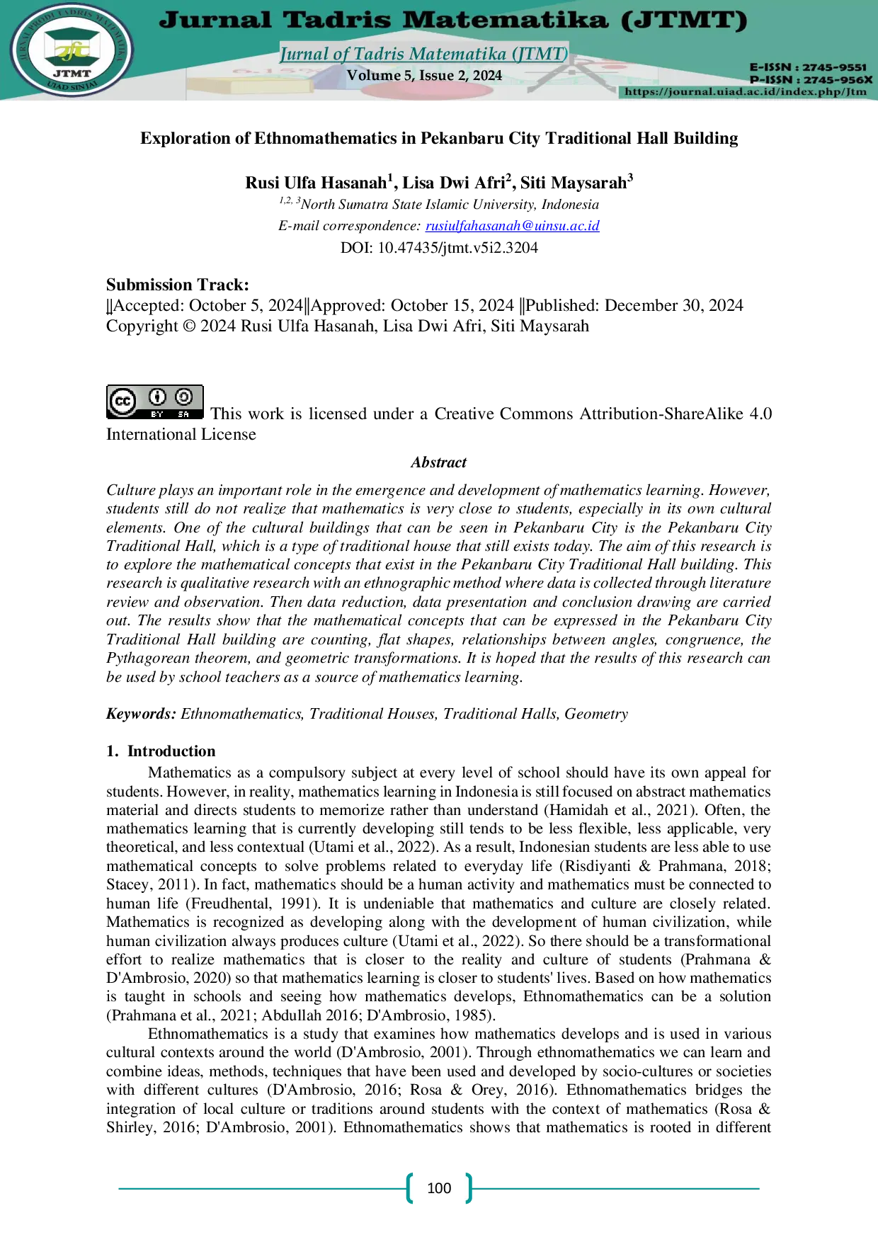 - Exploration of Ethnomathematics in Pekanbaru City Traditional Hall Building | JTMT: Journal Tadris Matematika.... doi.org/10.47435/jtmt.v5i2.3204Exploration of Ethnomathematics in Pekanbaru City Traditional Hall Building JTMT Journal Tadris Matematika doi 10 47435 jtmt v5i2 3204
