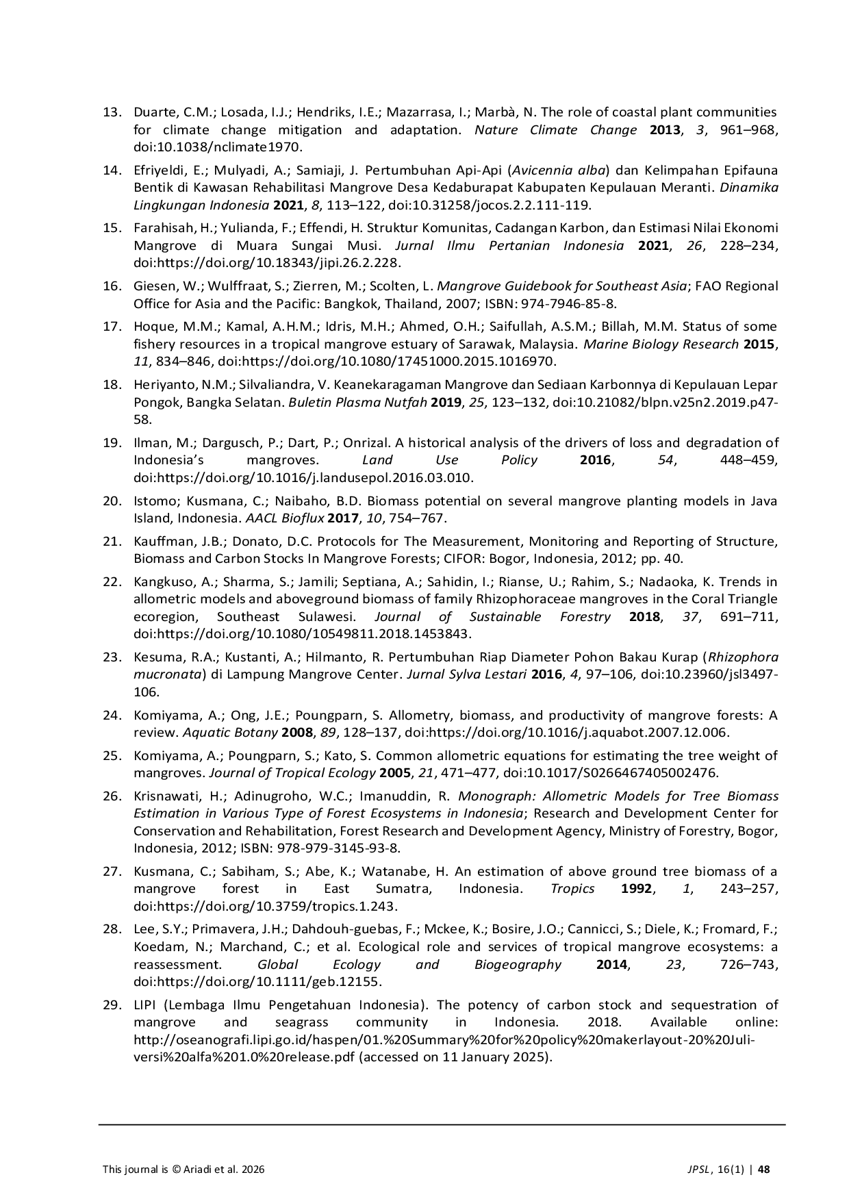 - Assessment of Mangrove Species Composition, Biomass, and Carbon Stock Potential for Climate Change Mitigation... journal.ipb.ac.id/jpsl/article/view/65382Assessment of Mangrove Species Composition Biomass and Carbon Stock Potential for Climate Change Mitigation journal ipb ac jpsl article view 65382