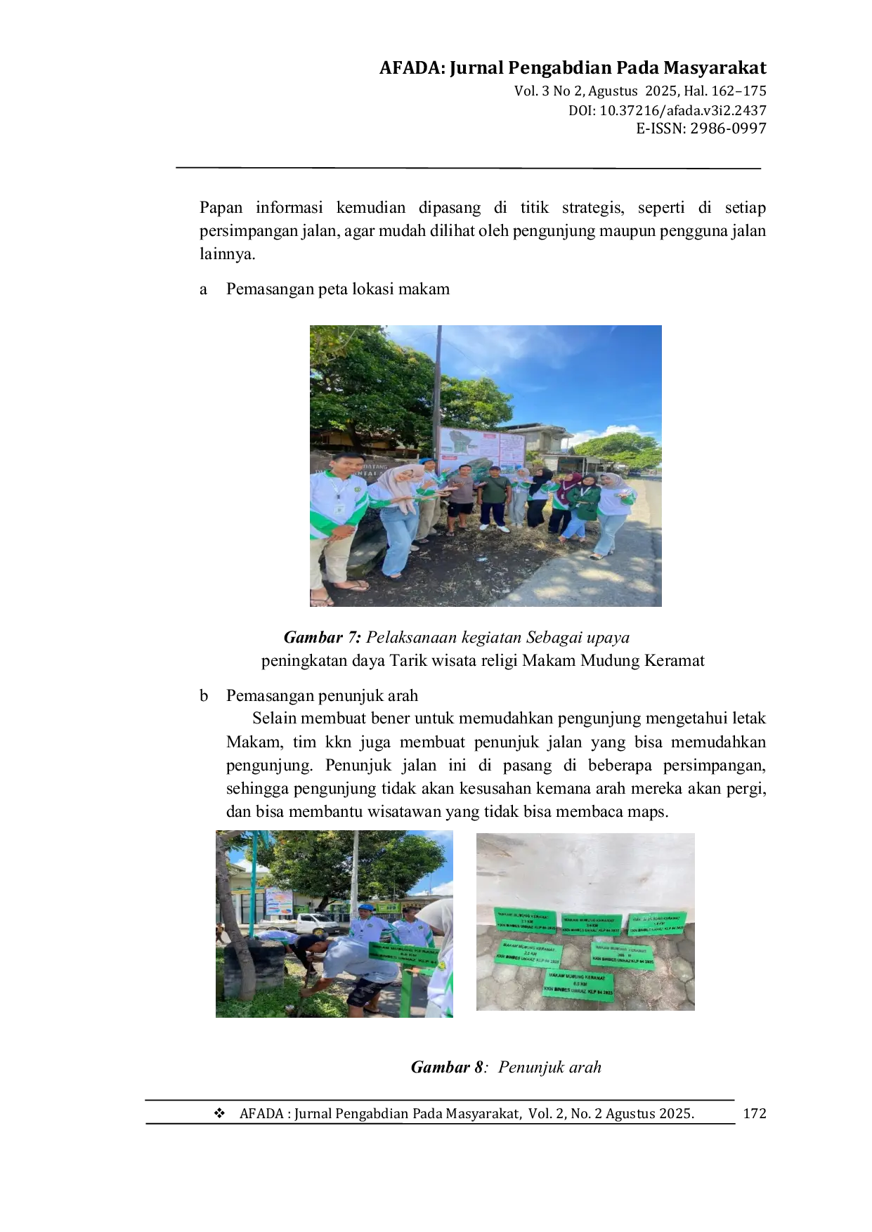 AFADA: Jurnal Pengabdian Pada MasyarakatAFADA: Jurnal Pengabdian Pada MasyarakatDesa Mekar Sari, kecamatan Suela, kabupaten Lombok Timur memiliki potensi wisata dari segi religi dan budaya. Potensi yang ada di Desa Mekar Sari yang paling menonjol adalah dari potensi wisata Religi Makam Mudung Keramat. Makam ini merupakan salah satu situs yang memiliki nilai sejarah dan spiritual tinggi bagi masyarakat setempat. Keberadaan makam ini belum banyak diketahui secara luas karna minimnya dokumentasi mengenai lokasi geografis yang akurat dan sejarah asal-usulnya. Penelitian ini bertujuan untuk melakukan pemetaan lokasi secara sistematis dan merekonstruksi sejarahnya melalui wawancara tokoh masyarakat, dan observasi lapangan. Hasil observasi menunjukan bahwa makam Mudung Keramat memiliki kaitan erat dengan asal-usul pemukiman awal masyarakat sekitar, serta menjadi pusat kegiatan spiritual dan tradisi keagamaan.