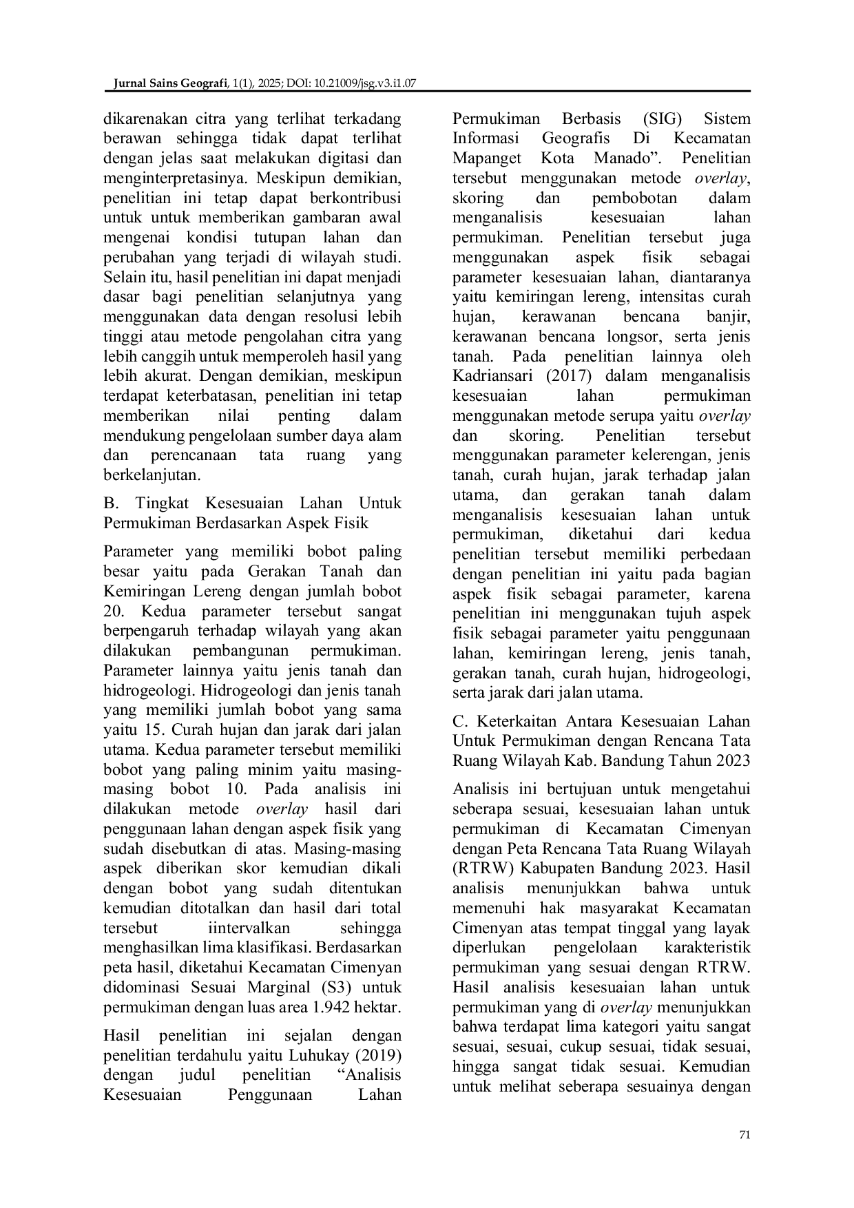 - Evaluasi Kesesuaian Lahan Untuk Permukiman Di Kecamatan Cimenyan Kabupaten Bandung Menggunakan Sistem... journal.unj.ac.id/unj/index.php/jsg/article/view/54712Evaluasi Kesesuaian Lahan Untuk Permukiman Di Kecamatan Cimenyan Kabupaten Bandung Menggunakan Sistem journal unj ac unj index php jsg article view 54712