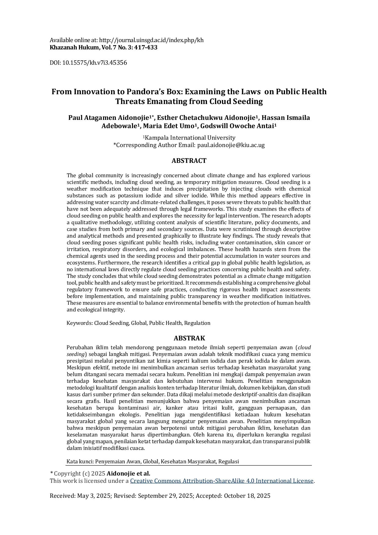 - khazanah hukum. innovation pandora box examining laws public health threats emanating cloud seeding khazanah... doi.org/10.15575/kh.v7i3.45356khazanah hukum innovation pandora box examining laws public health threats emanating cloud seeding khazanah doi 10 15575 kh v7i3 45356