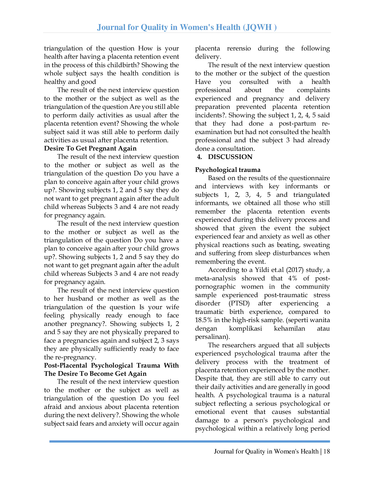 - PSYCHOLOGICAL TRAUMATIC POST-PLACENTA RETENSION WITH THE DESIRE TO GET PREGNANT | Journal for Quality... jqwh.org/index.php/JQWH/article/view/236PSYCHOLOGICAL TRAUMATIC POST PLACENTA RETENSION WITH THE DESIRE TO GET PREGNANT Journal for Quality jqwh index php JQWH article view 236