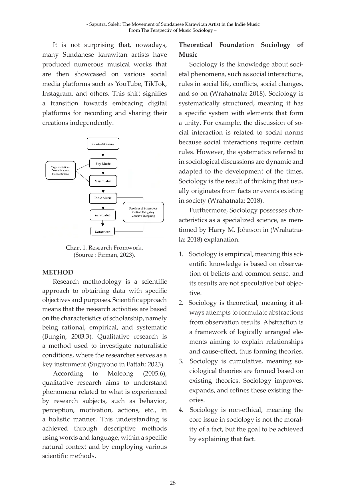 PANTUN: Jurnal Ilmiah Seni BudayaPANTUN: Jurnal Ilmiah Seni BudayaThis research delves into the attitudes and perspectives of Sundanese karawitan artists toward the indie music movement through the lens of music sociology. Employing qualitative methodologies such as literature review and fieldwork, the study reveals that these artists do not merely act as preservers of cultural heritage but also actively adapt and integrate their traditional music into the indie music scene. As pivotal figures, they engage in collaborations with global elements within the indie world, making substantial contributions to the evolution of indie music. This active participation fosters a unique harmony that mirrors the diverse and dynamic nature of Indonesian culture. The study offers a comprehensive analysis of how Sundanese karawitan artists interact with and influence the indie music scene. Their involvement is not just a preservation of traditional art forms but a dynamic adaptation that enriches both their cultural heritage and the broader indie music movement. By blending traditional and contemporary elements, these artists create innovative music that appeals to a global audience while retaining its cultural roots. Furthermore, this research highlights the significant role of Sundanese karawitan artists in the indie music scene, showcasing their ability to navigate between tradition and modernity. Their contributions reflect a broader trend in the Indonesian music landscape where traditional art forms are not static but are continually evolving and adapting to new contexts and influences. This dynamic interplay between tradition and innovation is crucial for the sustainability and growth of both traditional and indie music genres in Indonesia.