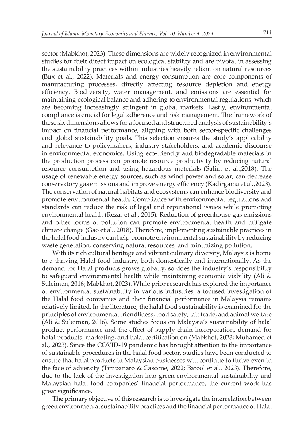 Journal of Islamic Monetary Economics and FinanceJournal of Islamic Monetary Economics and FinanceDengan meningkatnya keprihatinan tentang degradasi lingkungan dan dampaknya pada ekosistem global, industri makanan halal menghadapi pemeriksaan dan tekanan yang semakin meningkat untuk mengadopsi praktik berkelanjutan. Penelitian ini memeriksa hubungan antara keberlanjutan hijau dan kinerja keuangan perusahaan makanan halal di Malaysia. Dengan menerapkan model panel dinamis terhadap sampel 75 perusahaan selama 10 tahun, kami mendokumentasikan efek beragam dari praktik berkelanjutan terhadap kinerja keuangan perusahaan. Lebih spesifik lagi, kami mencatat bahwa penggunaan bahan yang efisien secara positif terkait dengan Return on Assets (ROA) dan Tobins Q (TBQ). Demikian pula, dengan mengurangi biaya dan meningkatkan citra publik perusahaan, manajemen emisi yang efektif meningkatkan baik ROA maupun TBQ. Namun, inisiatif energi terkait berdampak negatif terhadap ROA dan TBQ. Upaya biodiversitas, meskipun mahal dalam jangka pendek, berkontribusi pada peningkatan penilaian pasar jangka panjang. Dalam hal yang sama, meskipun mengurangi keuntungan jangka pendek, keberlanjutan lingkungan secara positif mempengaruhi penilaian pasar. Akhirnya, inisiatif pengelolaan air sering kali menyebabkan penurunan ROA dan TBQ, yang mungkin terkait dengan biaya tinggi. Dari hasil ini, pembuat kebijakan harus mendukung penggunaan bahan yang efisien dan manajemen emisi melalui insentif untuk meningkatkan keuntungan dan penilaian pasar. Selain itu, mereka harus mempertimbangkan memberikan bantuan keuangan untuk inisiatif kepatuhan biodiversitas dan lingkungan sambil mengevaluasi cara untuk meringankan biaya tinggi yang terkait dengan pengelolaan energi dan air untuk memastikan pertumbuhan industri yang berkelanjutan.