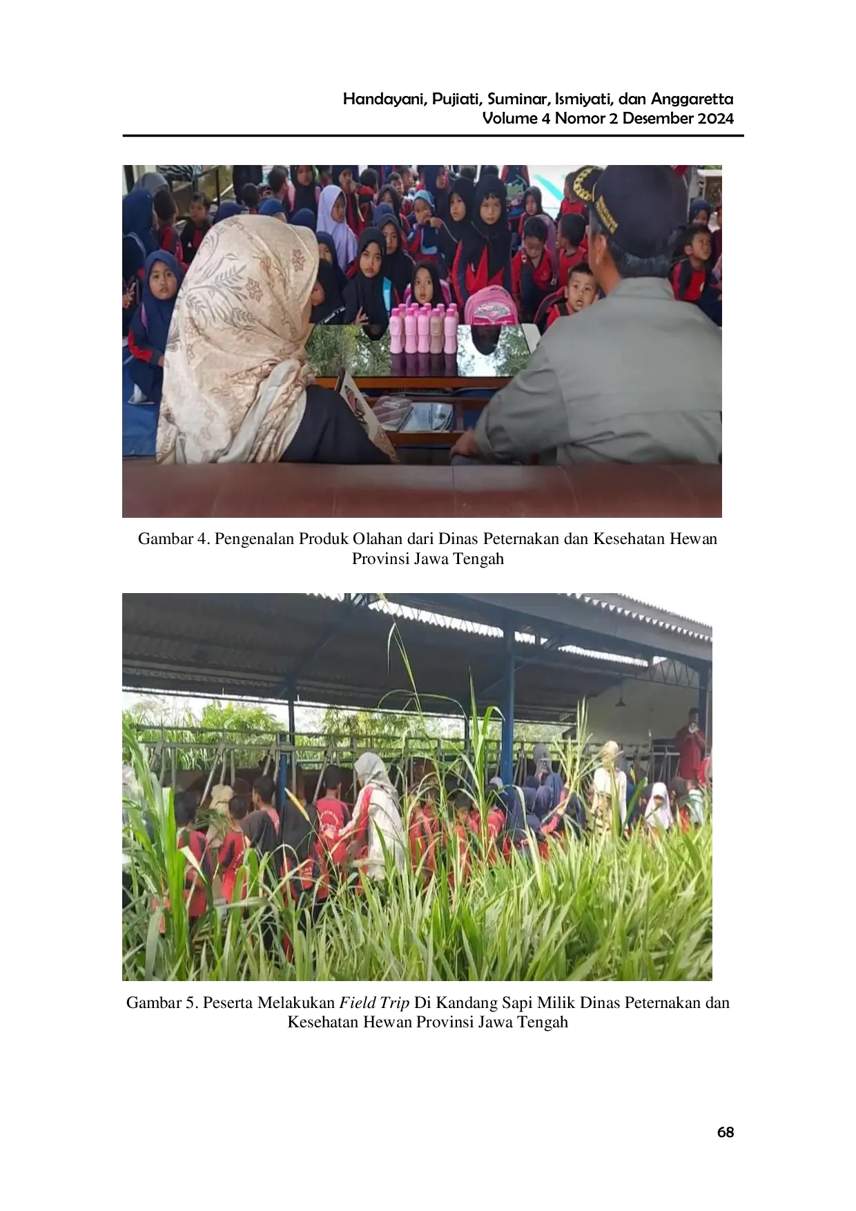 D'edukasi: Jurnal Pengabdian MasyarakatD'edukasi: Jurnal Pengabdian MasyarakatTujuan PkM untuk memberikan pengetahuan dan pemahaman anak didik tentang entrepreneurship value serta menumbuhkan minat anak didik untuk menjadi wirausahawan dengan memberikan pengalaman berkunjung langsung ke UMKM melalui kegiatan field trip. Metode pelaksanaan kegiatan adalah ceramah, diskusi, demonstrasi, dan field trip ke Usaha Pemerahan Sapi di Dinas Peternakan dan Kesehatan Hewan Provinsi Jawa Tengah. Melalui kegiatan field trip UMKM, seluruh peserta telah mendapatkan pengetahuan dan pengalaman tentang bagaimana merawat dan memelihara sapi. Selanjutnya siswa diajak untuk melihat proses pemerahan susu sapi dan dilanjutkan dengan melihat cara membuat susu sapi. Dari kegiatan field trip dijelaskan bahwa banyak hal yang bisa dimanfaatkan secara ekonomis, dari dagingnya, kulitnya dan juga susu sapi. Semua penjelasan dari kegiatan field trip UMKM, siswa dapat memahami berbagai manfaat ekonomi dari memelihara hewan sapi, ada banyak produk yang dihasilkan dan dapat memiliki nilai ekonomi untuk diperjual belikan. Kegiatan PkM berjalan dengan baik dan sangat bermanfaat dalam meningkatkan dan menanamkan nilai-nilai karakter kewirausahaan sejak anak usia dini. Untuk itu, peserta sangat berharap bahwa kegiatan ini dapat berkelanjutan, tidak hanya selesai sampai pada kegiatan field trip UMKM saja, namun pada kegiatan-kegiatan lainnya yang membantu pembelajaran sekolah menjadi lebih baik.