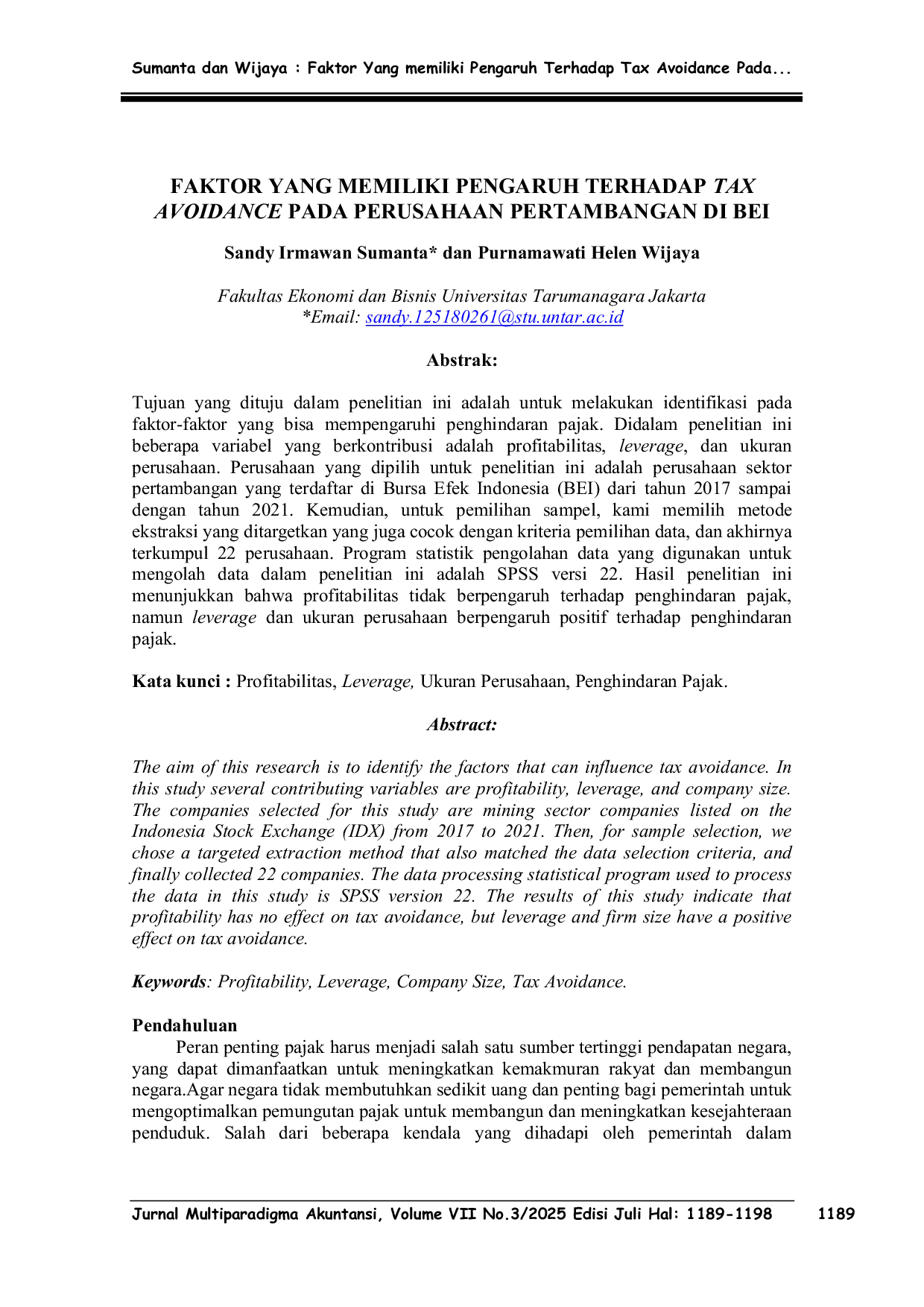 UNTARUNTAR Profitabilitas dan leverage berpengaruh negatif serta signifikan terhadap tax avoidance, artinya semakin tinggi profitabilitas dan leverage perusahaan,Profitabilitas dan leverage berpengaruh negatif serta signifikan terhadap tax avoidance, artinya semakin tinggi profitabilitas dan leverage perusahaan,