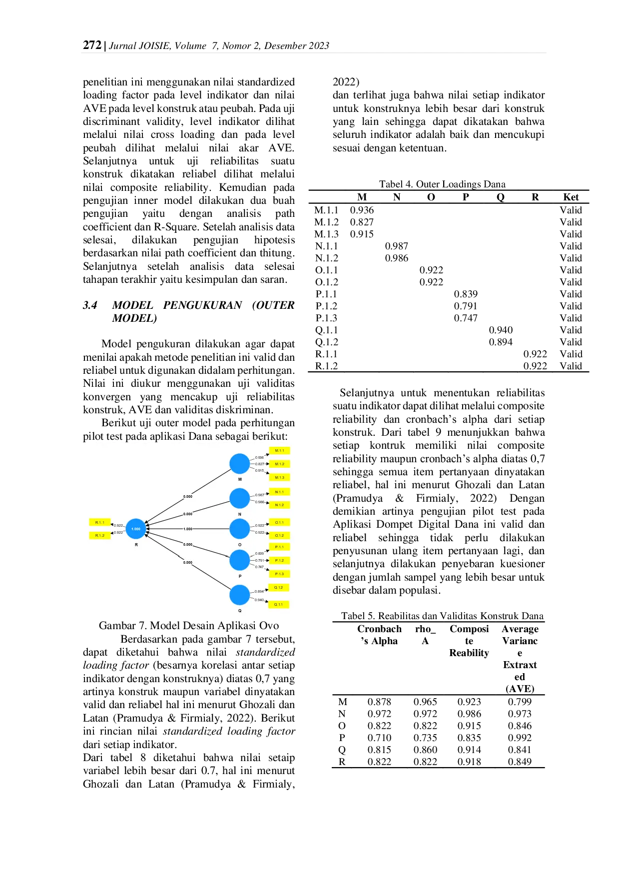 JOISIE (Journal Of Information Systems And Informatics Engineering)JOISIE (Journal Of Information Systems And Informatics Engineering)Dompet Digital adalah sarana elektronik yang menyediakan pelayanan transaksi baik untuk penyimpanan, pembayaran, penyicilan, dan pengiriman uang secara elektronik. Kepuasan konsumen menjadi sangat penting dalam meningkatkan layanan yang diberikan oleh pelaku usaha yang menawarkan jasanya. Rasa puas yang dirasakan pelanggan ialah tingkat kepuasan, kesenangan, ataupun kepuasan yang dirasakan oleh pelanggan selepas memakai produk atau jasa suatu perusahaan. Penelitian ini bertujuan untuk mengukur tingkat kepuasan konsumen terhadap penggunaan aplikasi dompet digital menggunakan metode End-User Computing Satisfaction (EUCS) dalam aplikasi Dana. Metode ini mengacu pada pendekatan atau teknik penilaian yang digunakan untuk mengukur sejauh mana pengguna merasa puas, nyaman, dan efektif saat memakai teknologi informasi dan sistem komputer yang disediakan untuk mereka. Pada penelitian menggunakan data kuesioner dengan jumlah responden 393. Berdasarkan temuan dari hasil analisis data kepuasan pengguna aplikasi DANA menggunakan metode EUCS dengan menyebarkan kuesioner kepada 393 responden dan diolah menggunakan tool SmartPLS 4.0. Dari 5 hipotesis yang telah dibuat terdapat 5 hipotesis yang diterima. Adapun hipotesis yang diterima yaitu, H1, H2, H3, H4 dan H5. Maka dapat disimpulkan bahwa kepuasan pengguna aplikasi DANA memiliki pengaruh yang positif. Hal ini disebabkan oleh korelasi dari tiap-tiap variabel yang ditunjukkan dengan nilai keterkaitan R-Square sebesar 89.3% dimana menyatakan bahwa strong atau kuat, sehingga dapat dinyatakan sikap terhadap penggunaan memiliki pengaruh yang baik terhadap kepuasan pengguna.