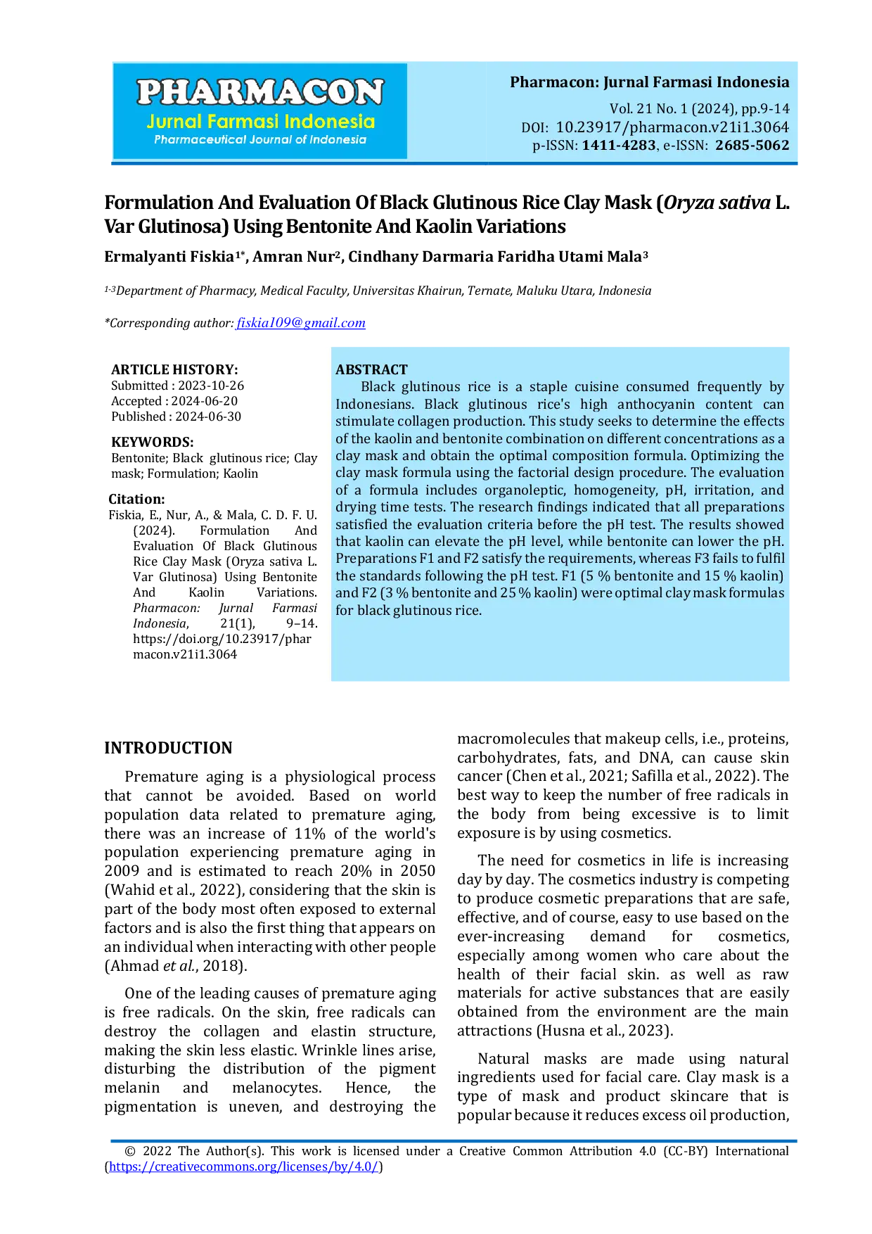 - Formulation And Evaluation Of Black Glutinous Rice Clay Mask (Oryza sativa L. Var Glutinosa) Using Bentonite... journals2.ums.ac.id/index.php/pharmacon/article/view/3064Formulation And Evaluation Of Black Glutinous Rice Clay Mask Oryza sativa L Var Glutinosa Using Bentonite journals2 ums ac index php pharmacon article view 3064