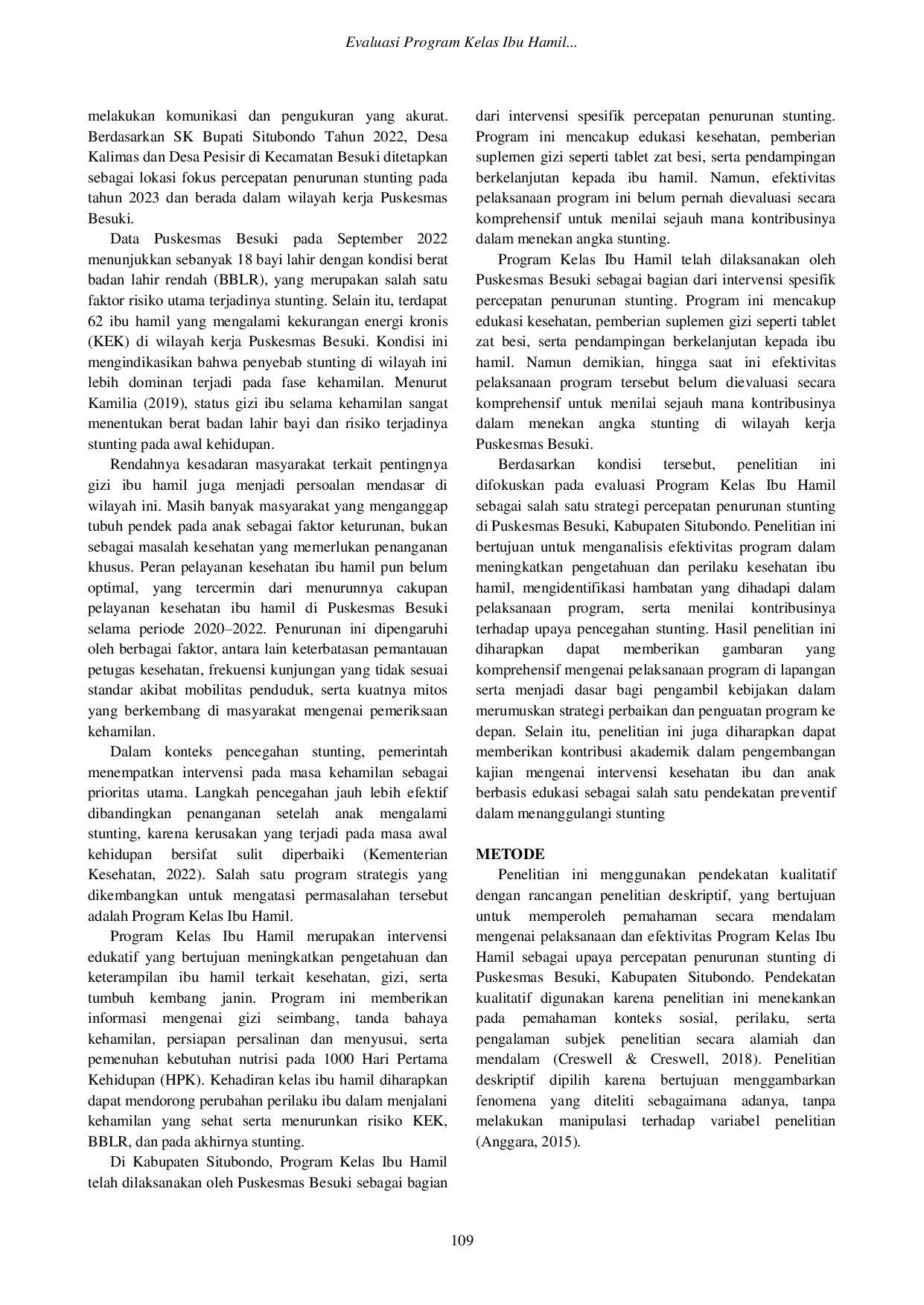 Program Kelas Ibu Hamil di Puskesmas Besuki telah efektif dalam meningkatkan pengetahuan dan kesadaran ibu hamil mengenai kesehatan kehamilan, gizi, dan pencegahan stunting.Program ini responsif terhadap kebutuhan peserta, tepat sasaran, dan menerapkan prinsip pemerataan layanan.Namun, efisiensi dan kecukupan pelaksanaan perlu ditingkatkan melalui perbaikan manajemen anggaran, jadwal, dan penyesuaian materi berdasarkan trimester kehamilan.