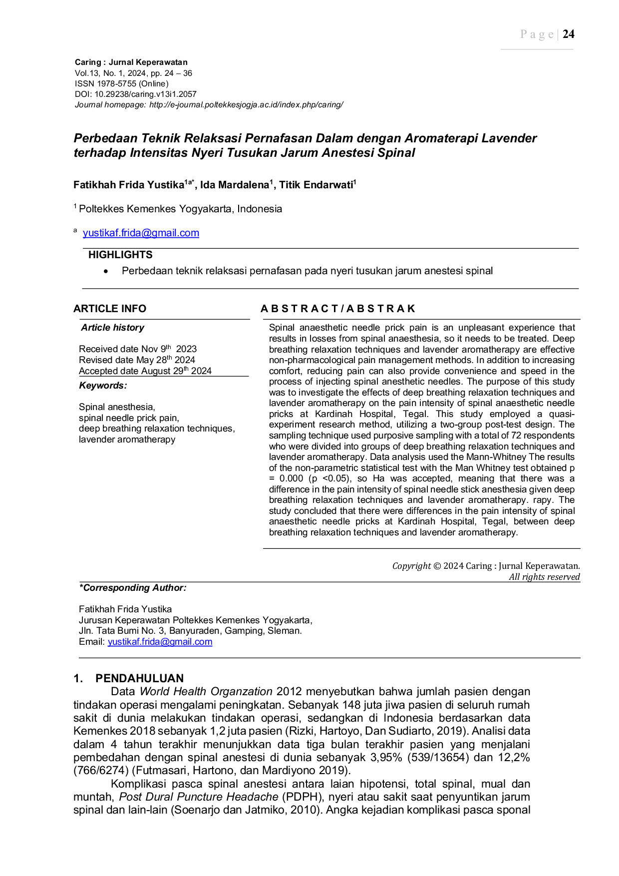 - Perbedaan Teknik Relaksasi Pernafasan Dalam dengan Aromaterapi Lavender terhadap Intensitas Nyeri Tusukan... e-journal.poltekkesjogja.ac.id/index.php/caring/article/view/2057Perbedaan Teknik Relaksasi Pernafasan Dalam dengan Aromaterapi Lavender terhadap Intensitas Nyeri Tusukan e journal poltekkesjogja ac index php caring article view 2057
