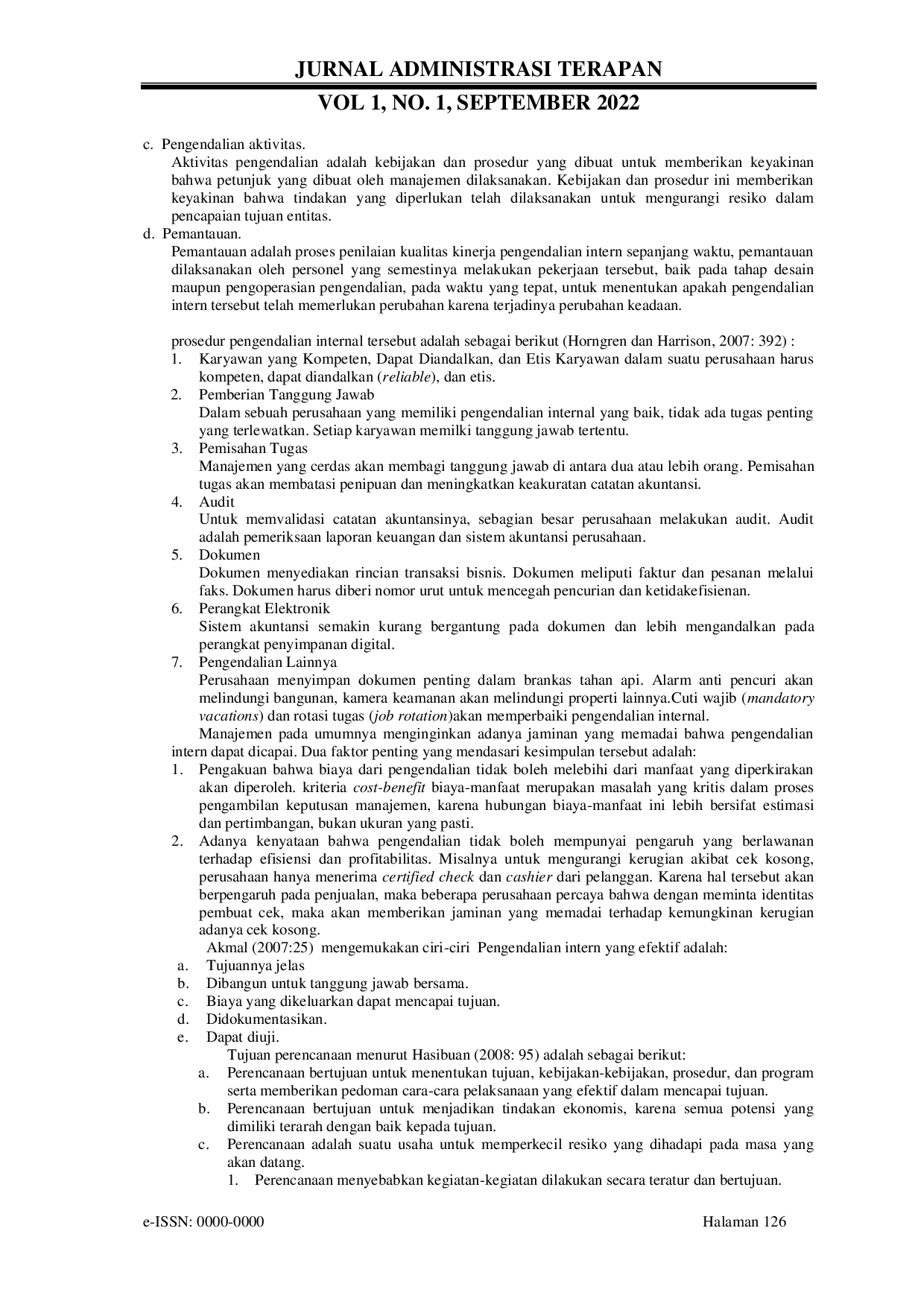 Jurnal Administrasi TerapanJurnal Administrasi TerapanPenelitian ini bertujuan untuk menganalisis sistem pengendalian internal yang diterapkan pemerintah terkait dengan pemungutan retribusi izin mendirikan bangunan. Data dikumpulkan melalui studi pustaka, dokumentasi, dan wawancara. Metode yang digunakan adalah deskriptif-kualitatif. Hasil penelitian menunjukkan bahwa sistem pengendalian internal pemerintah Kota Makassar dalam pemungutan retribusi izin mendirikan bangunan belum memenuhi unsur-unsur sistem pengendalian internal sesuai Peraturan Pemerintah nomor 60 Tahun 2008 karena masih terdapat beberapa kelemahan atau ketidaksesuaian.