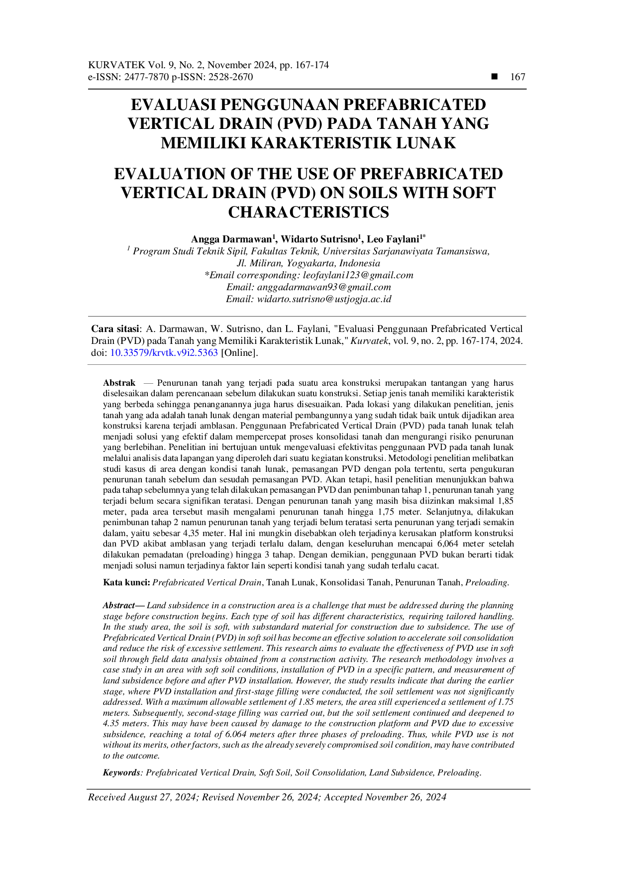 - EVALUASI PENGGUNAAN PREFABRICATED VERTICAL DRAIN (PVD) PADA TANAH YANG MEMILIKI KARAKTERISTIK LUNAK |... journal.itny.ac.id/index.php/krvtk/article/view/5363EVALUASI PENGGUNAAN PREFABRICATED VERTICAL DRAIN PVD PADA TANAH YANG MEMILIKI KARAKTERISTIK LUNAK journal itny ac index php krvtk article view 5363